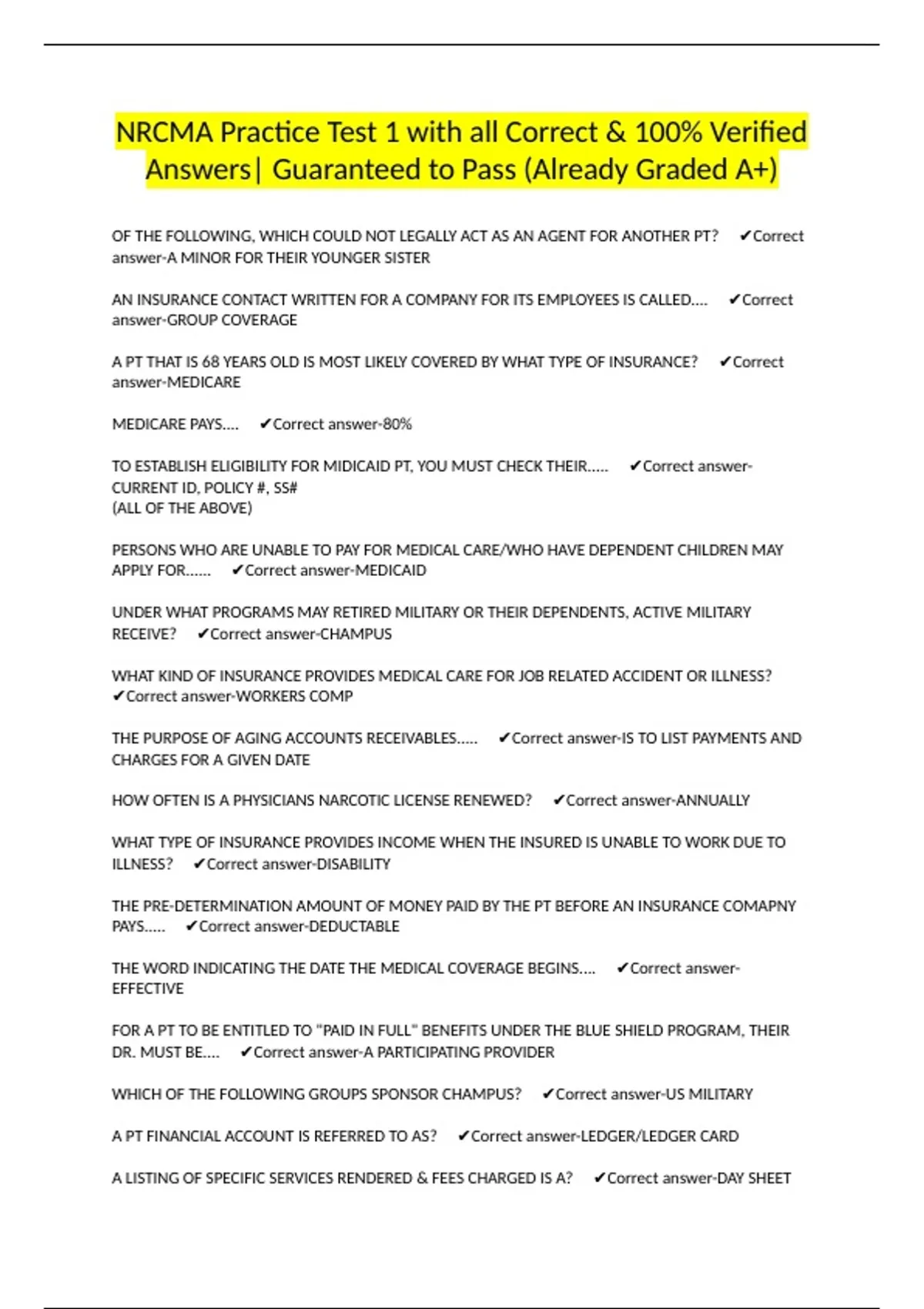 NRCMA Practice Test 1 with all Correct & 100% Verified Answers| Guaranteed to Pass (Already Graded A+)