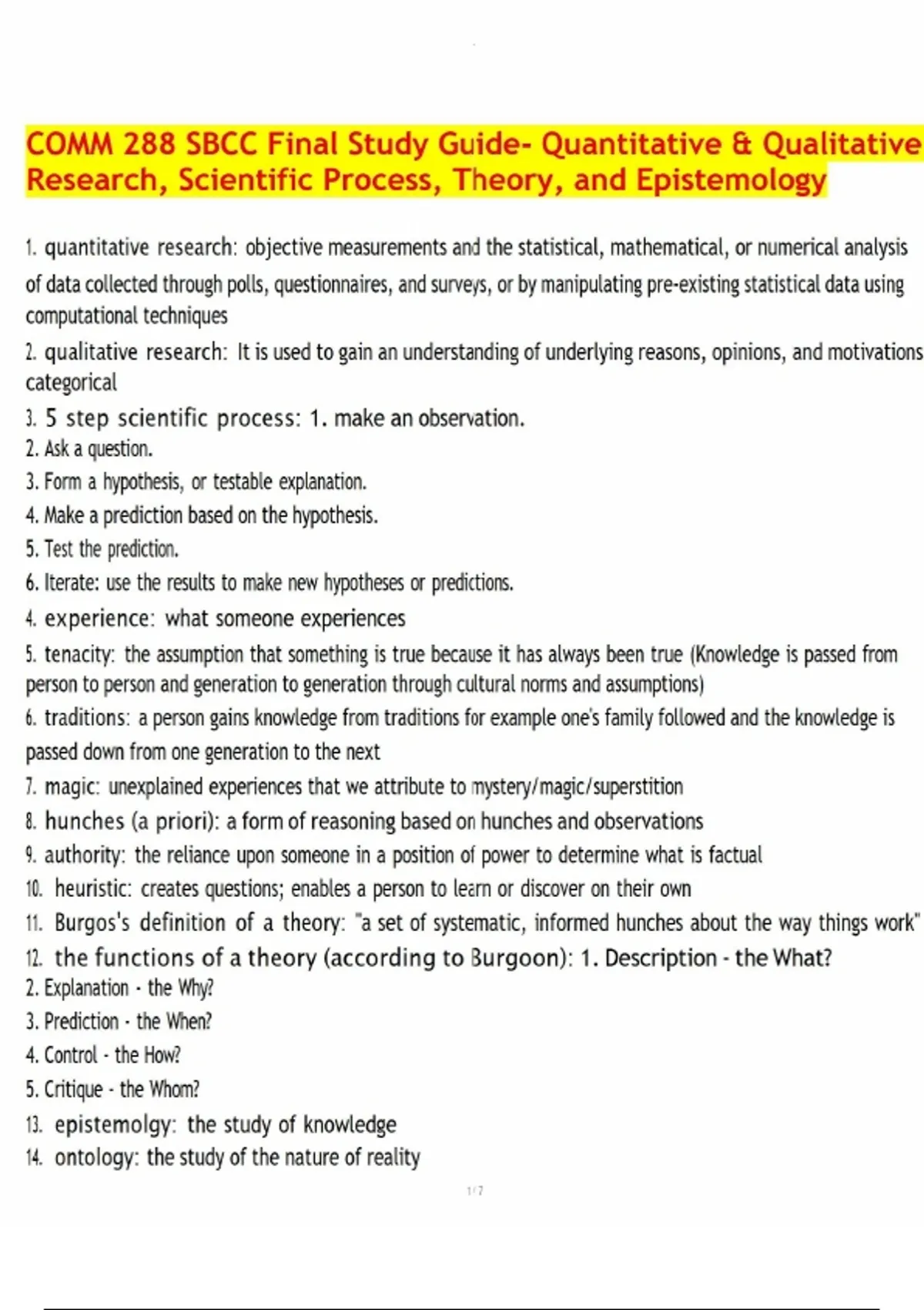 COMM 288 SBCC Final Study Guide- Quantitative & Qualitative Research, Scientific Process, Theory, and Epistemology.pdf