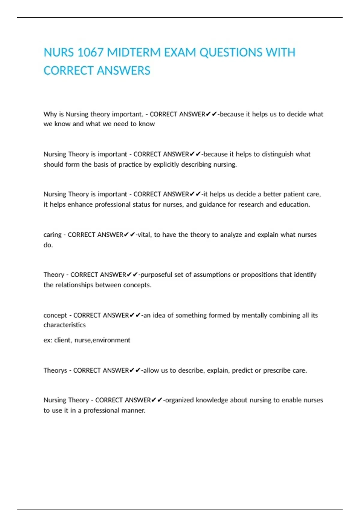 Nursing |Theory |is |important |- |CORRECT |ANSWER✔✔-it |helps |us |decide |a |better |patient |care, |