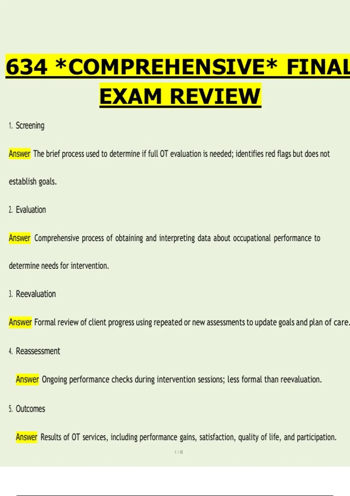 Answer Starts with occupations and participation, then identifies underlying factors.