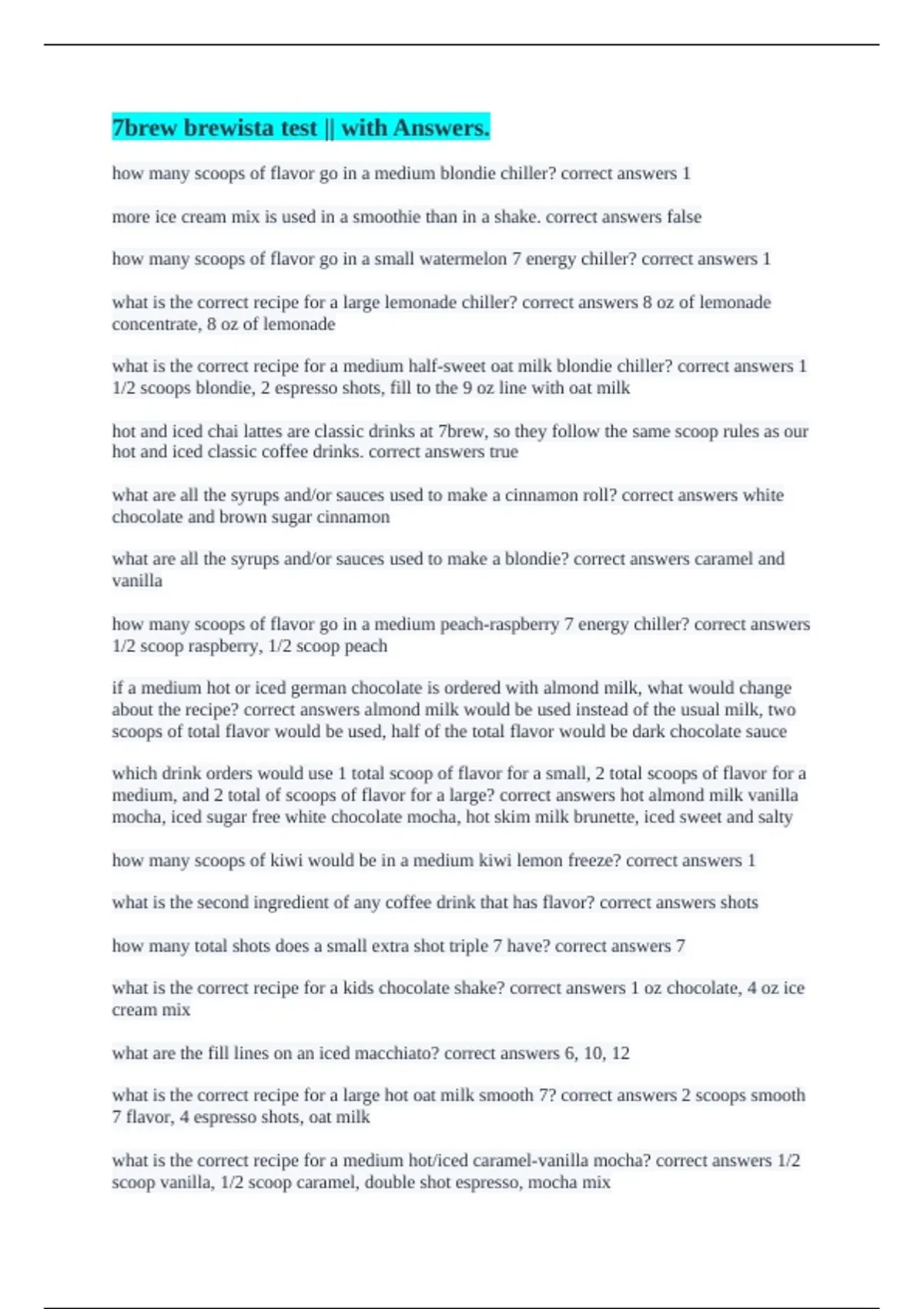 medium, and 2 total of scoops of flavor for a large? correct answers hot almond milk vanilla