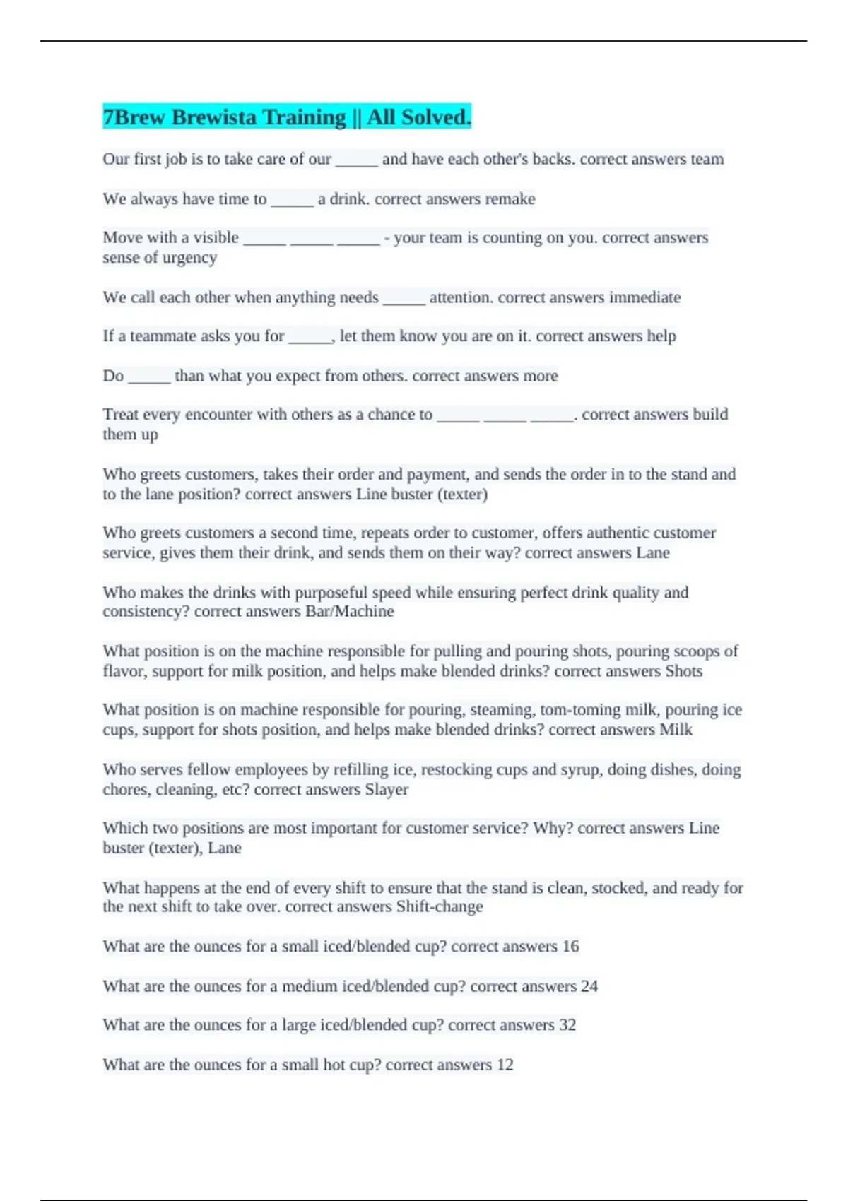 7Brew Brewista Training || All Solved.