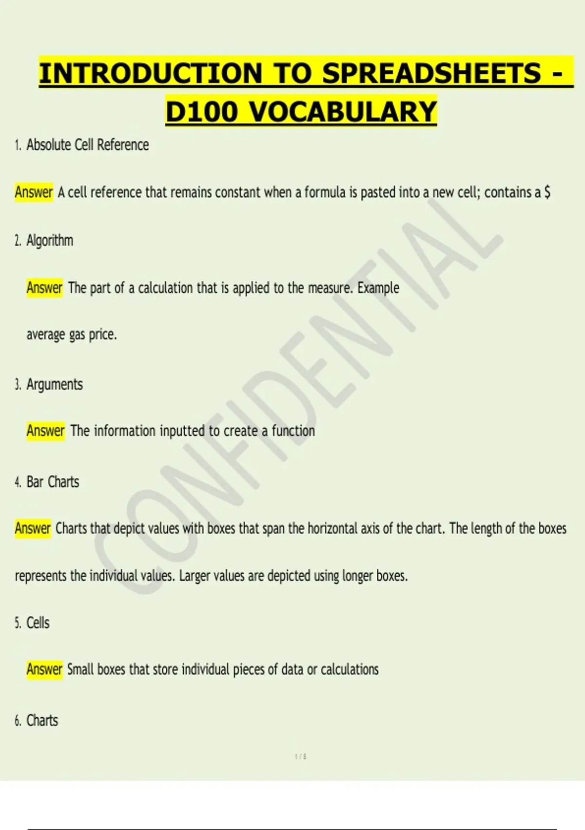 Answer The calculation prescribed by the formula in a spreadsheet