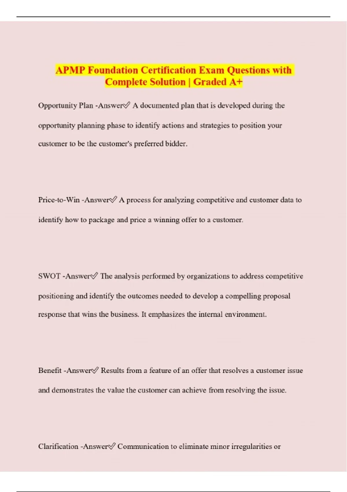 APMP Foundation Certification Exam Questions with Complete Solution | Graded A+