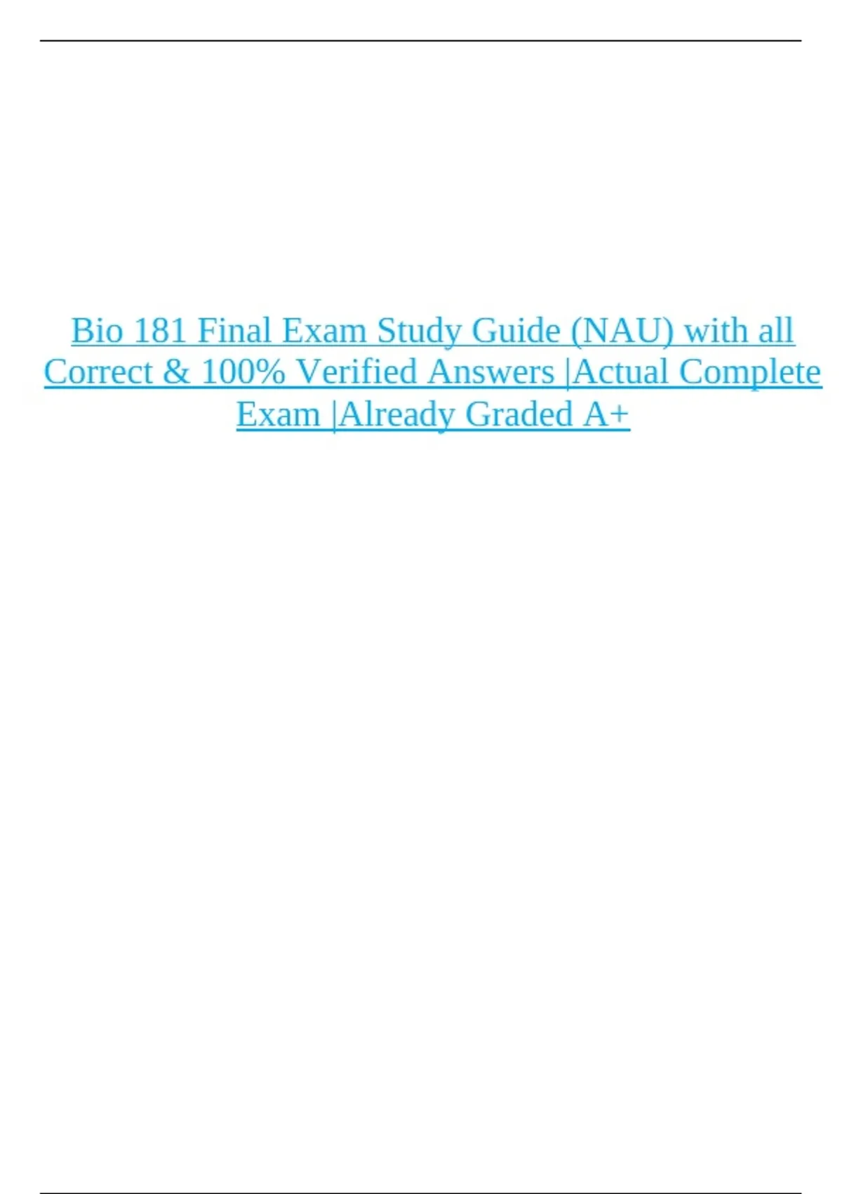 Bio 181 Final Exam Study Guide (NAU) with all Correct & 100% Verified Answers |Actual Complete Exam |Already Graded A+