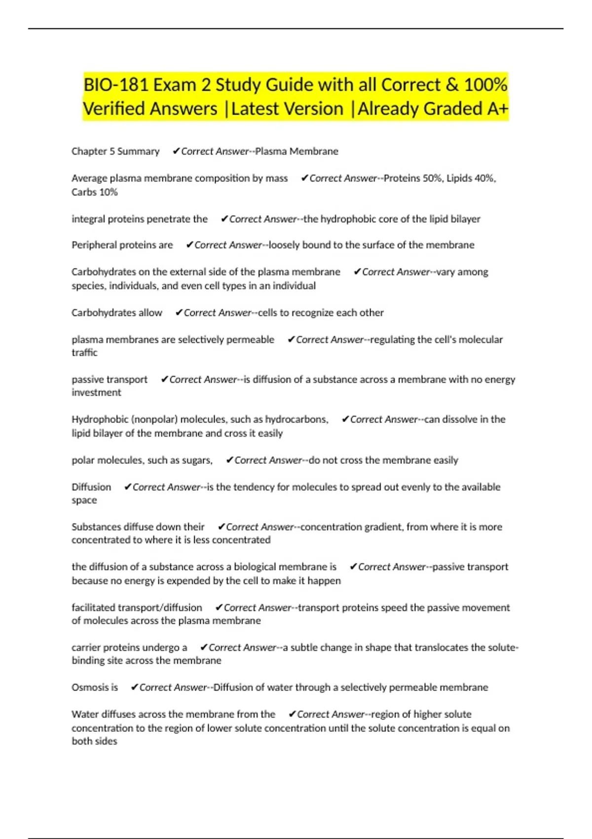 Chapter 5 Summary ✔Correct Answer--Plasma Membrane