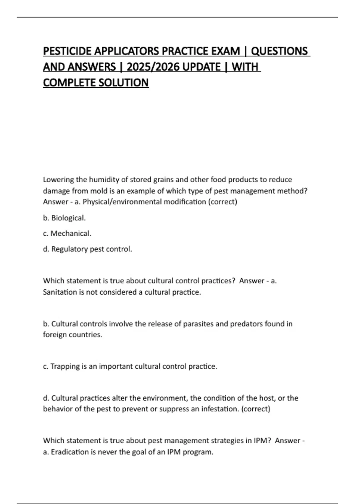 Which statement is true about cultural control practices? Answer - a.