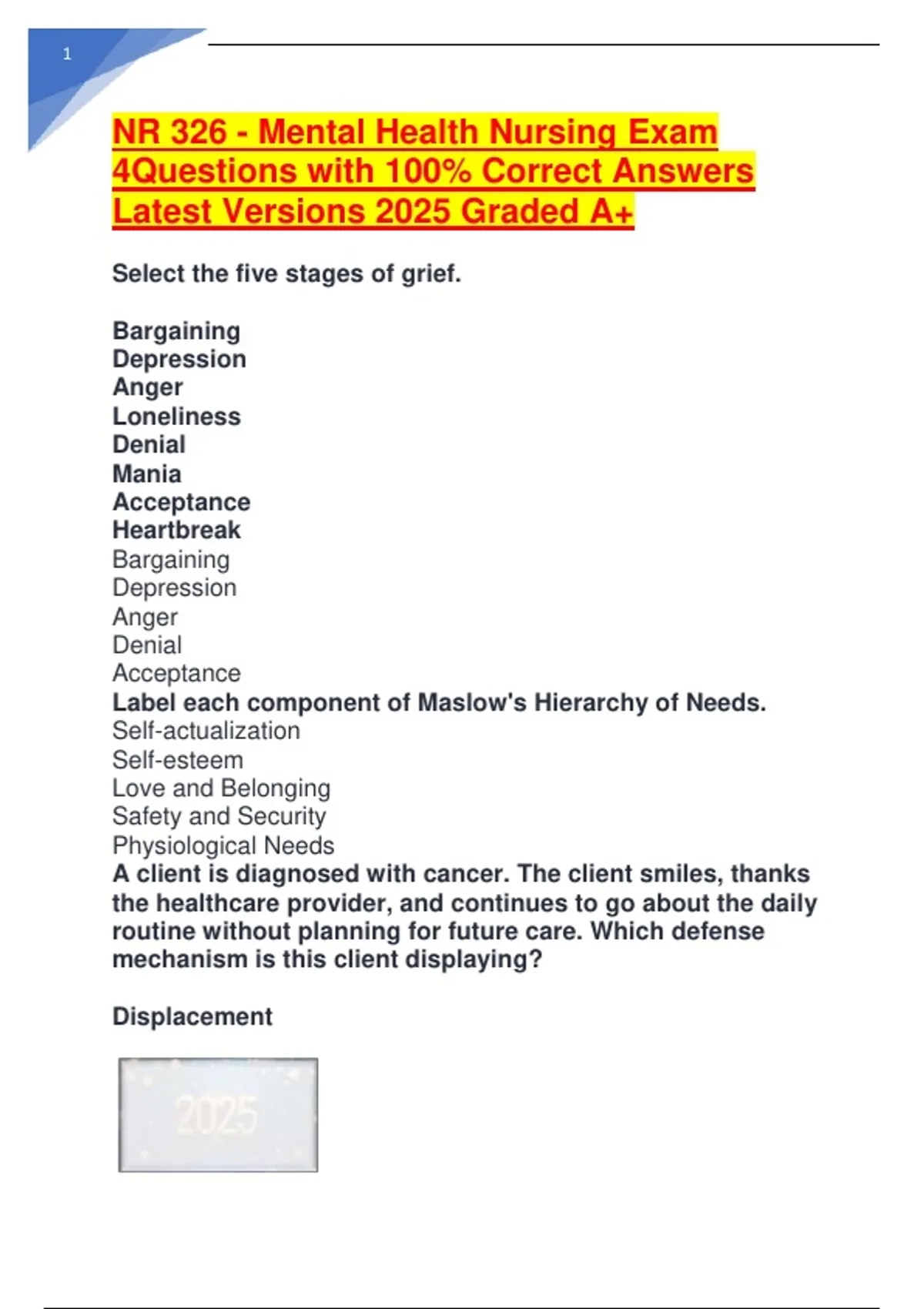 NR 326 - Mental Health Nursing Exam
