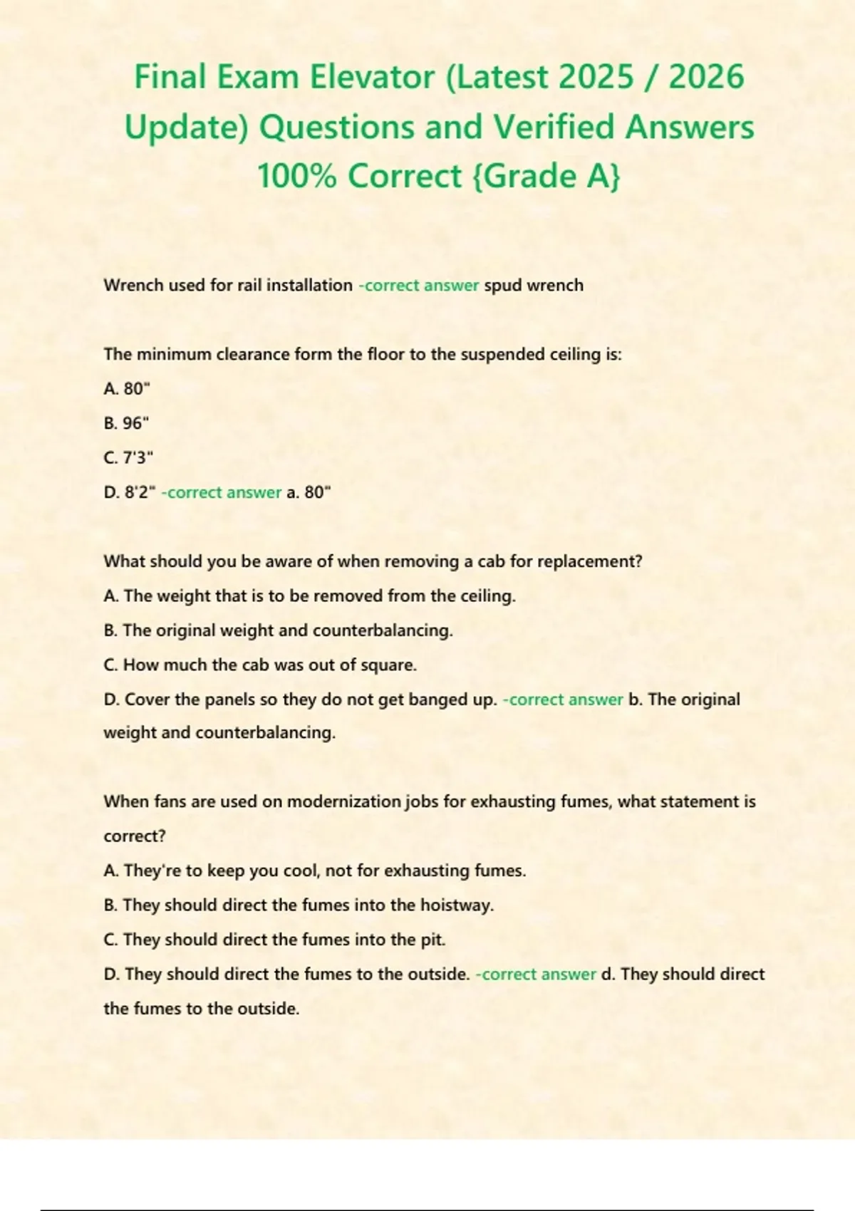 Final Exam Elevator (Latest Update) Questions and Verified Answers 100- Correct -Grade
