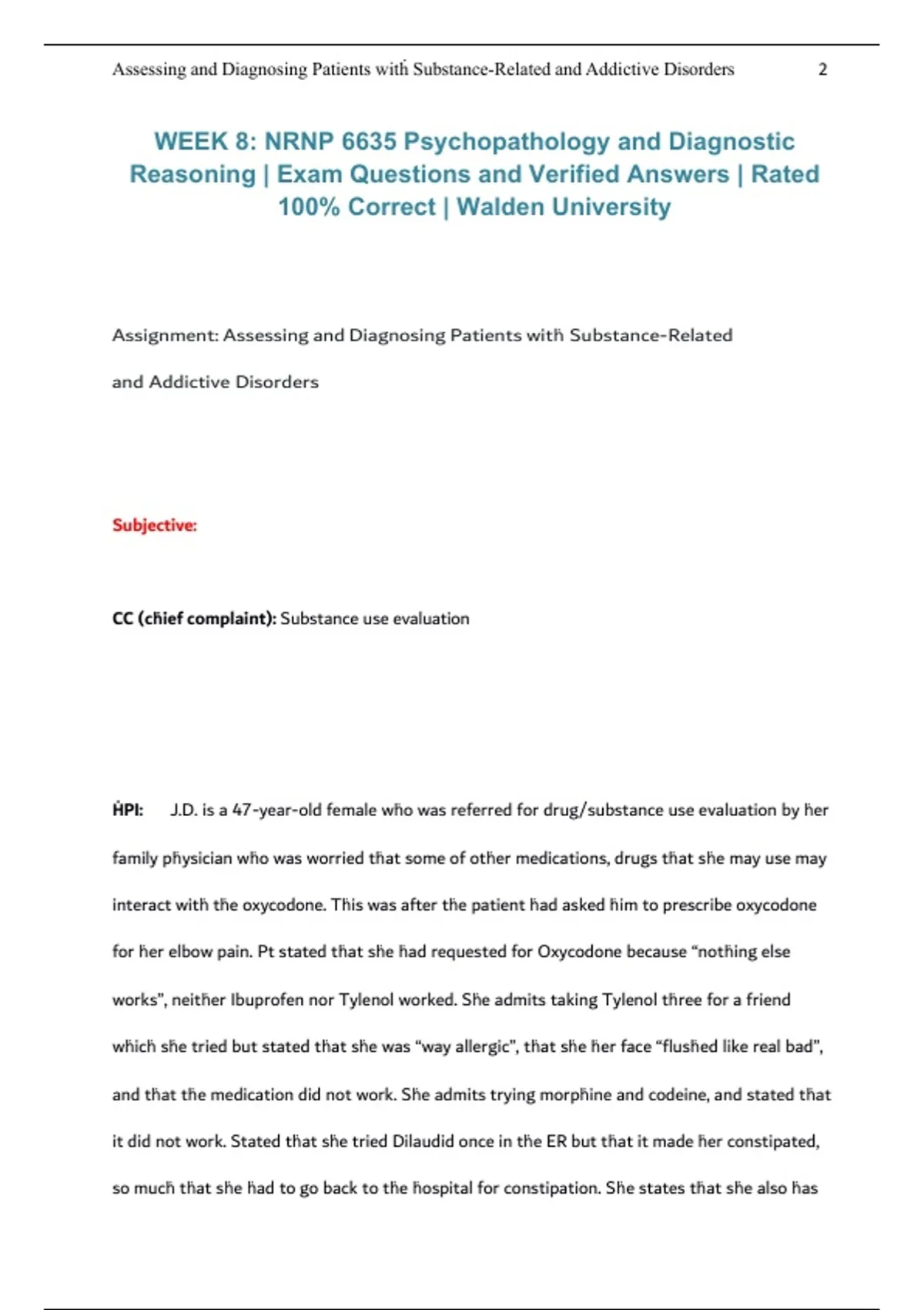 NRNP 6635 Psychopathology and Diagnostic Reasoning, Walden University, 2026/2027 – Week 8 exam questions with verified answers