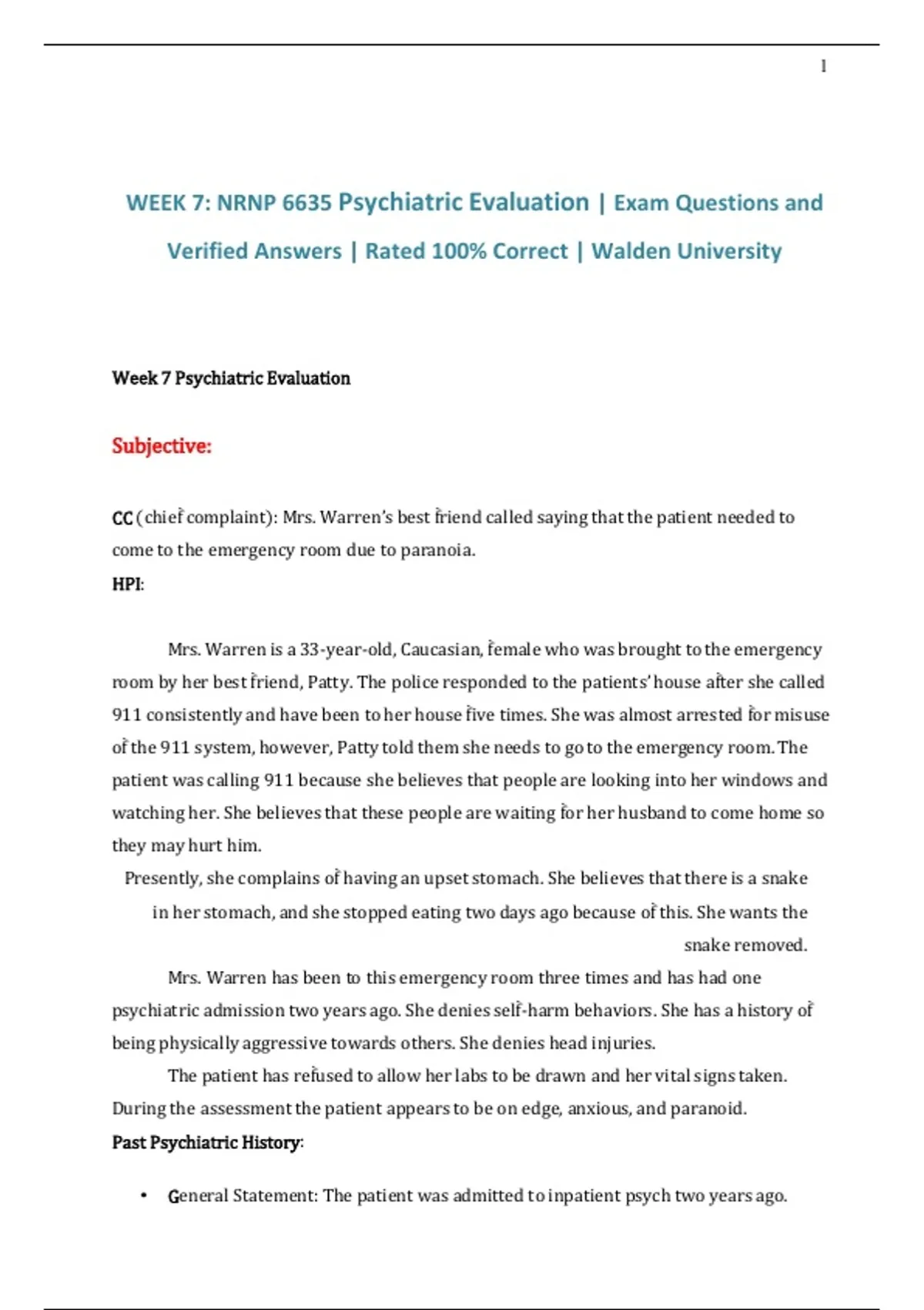 WEEK 7: NRNP 6635 Psychiatric Evaluation | Exam Questions and