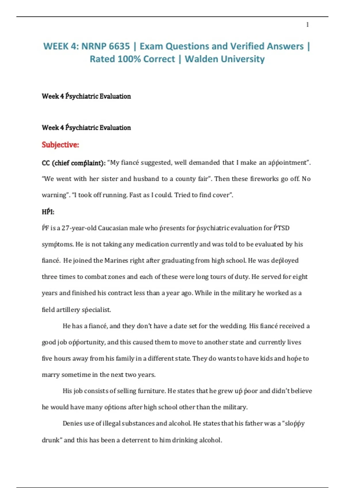 Week 4 Ṕsychiatric Evaluation