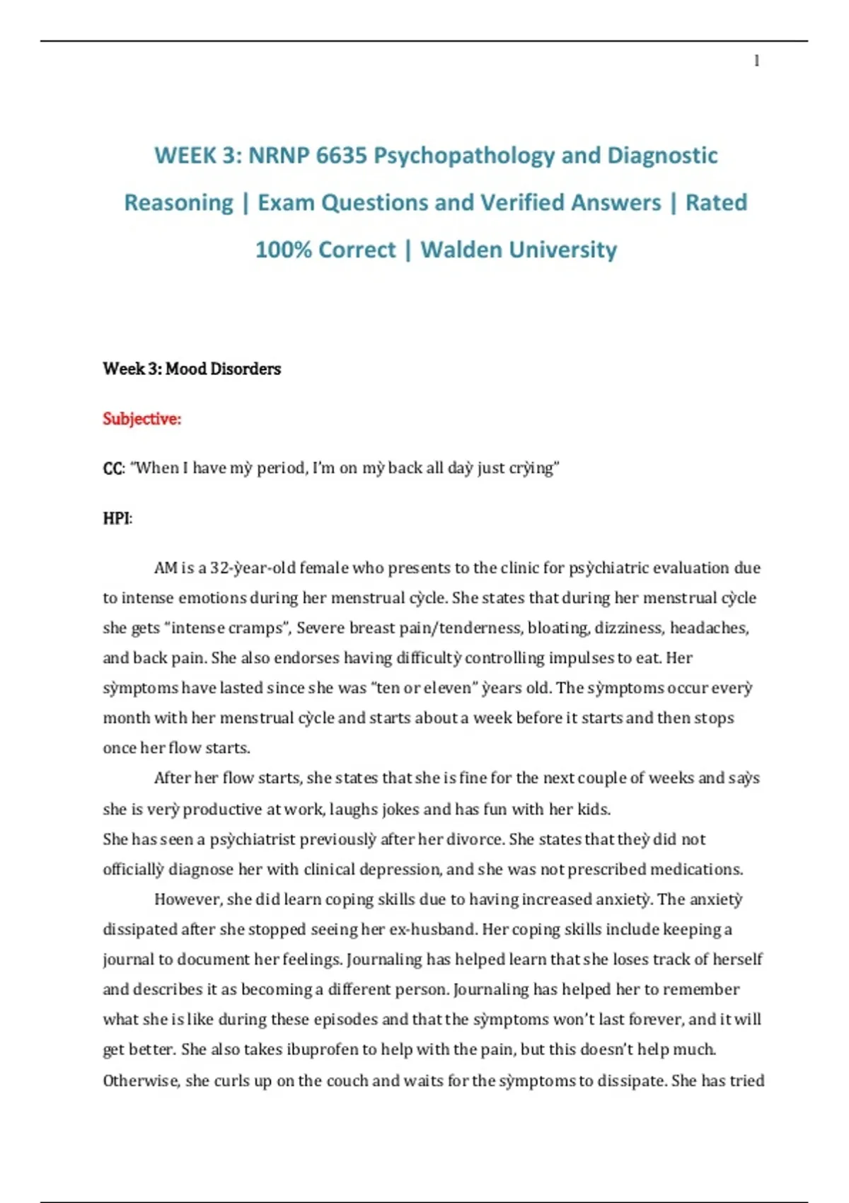 WEEK 3: NRNP 6635 Psychopathology and Diagnostic