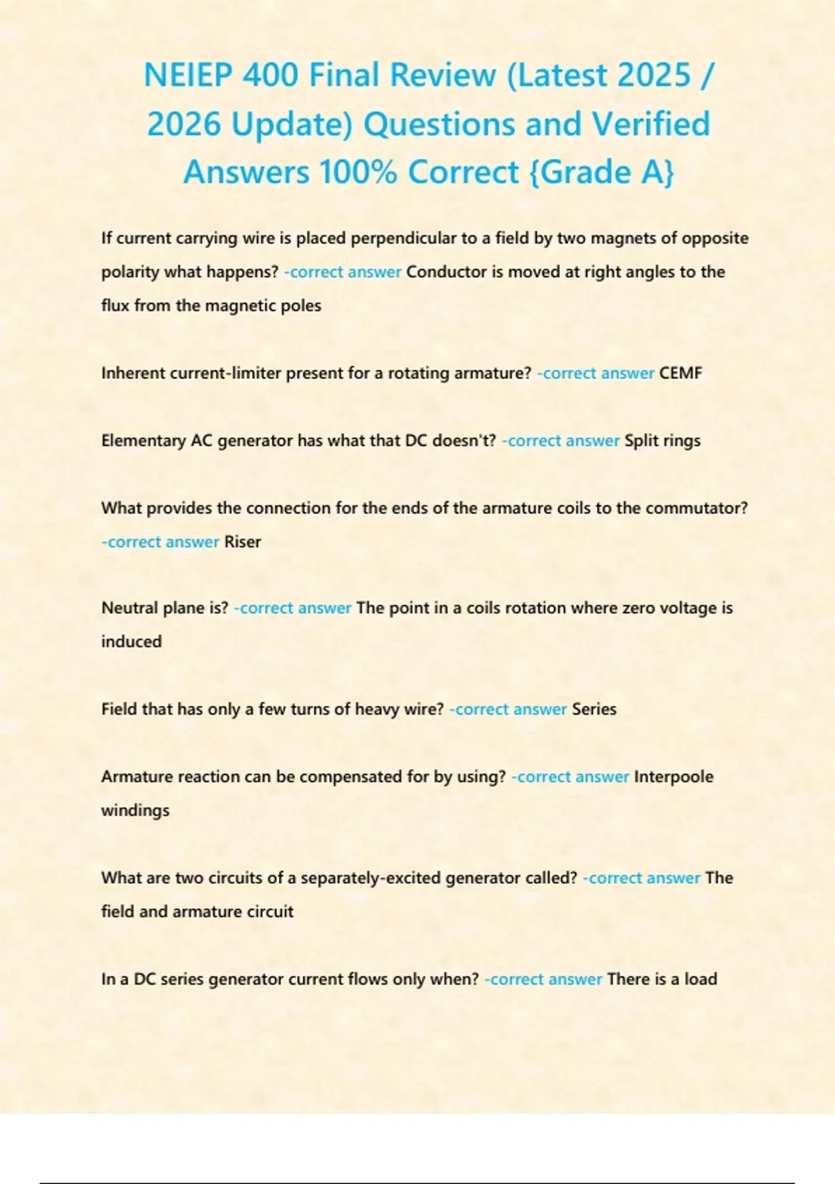 NEIEP 400 Final Review (Latest Update) Questions and Verified Answers 100- Correct -Grade