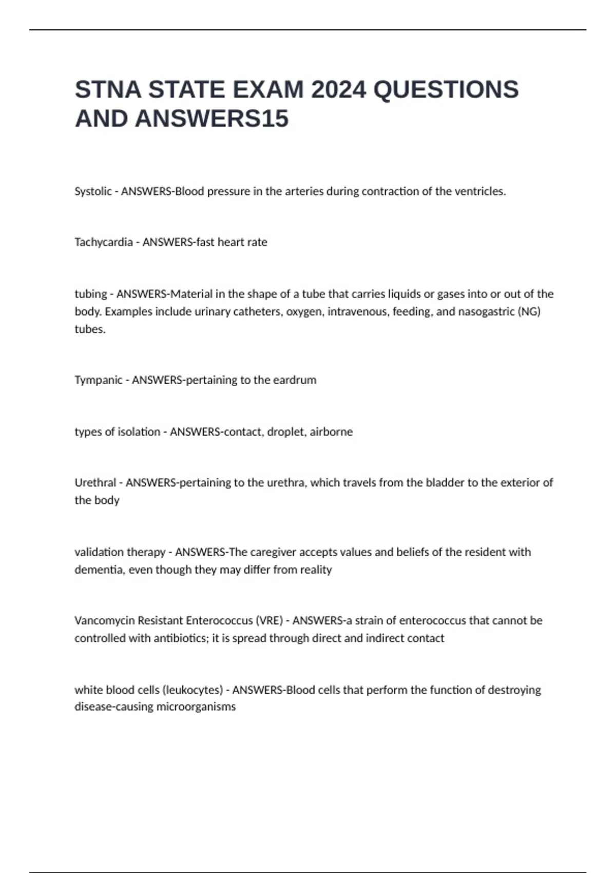 STNA STATE EXAM 2024 QUESTIONS