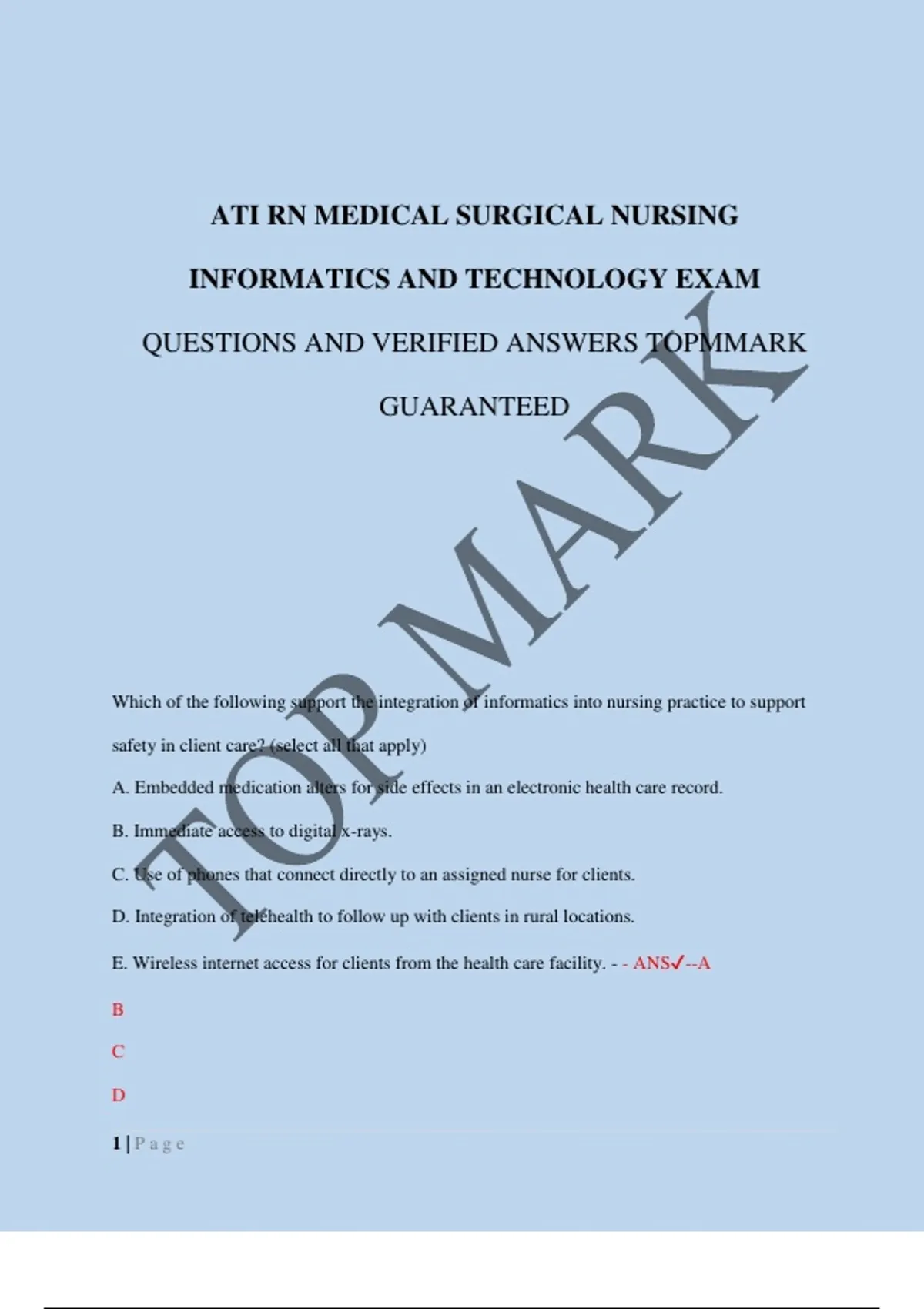 ATI RN MEDICAL SURGICAL NURSING INFORMATICS AND TECHNOLOGY EXAM QUESTIONS AND VERIFIED ANSWERS TOPMMARK GUARANTEED