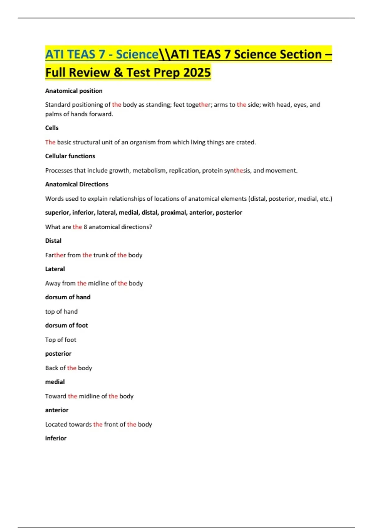 ATI TEAS 7 Science Section – Full Review & Test Prep 2025