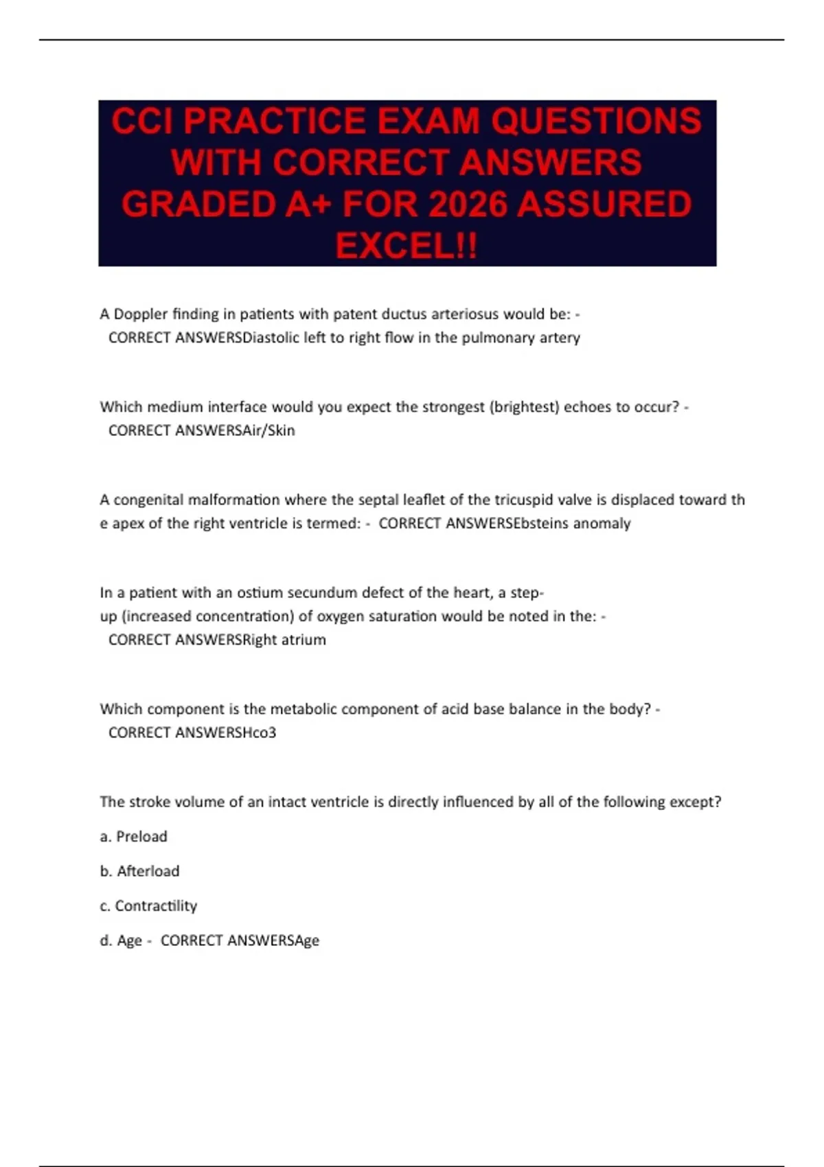 CCI PRACTICE EXAM QUESTIONS WITH CORRECT ANSWERS GRADED A+ FOR 2026 ASSURED