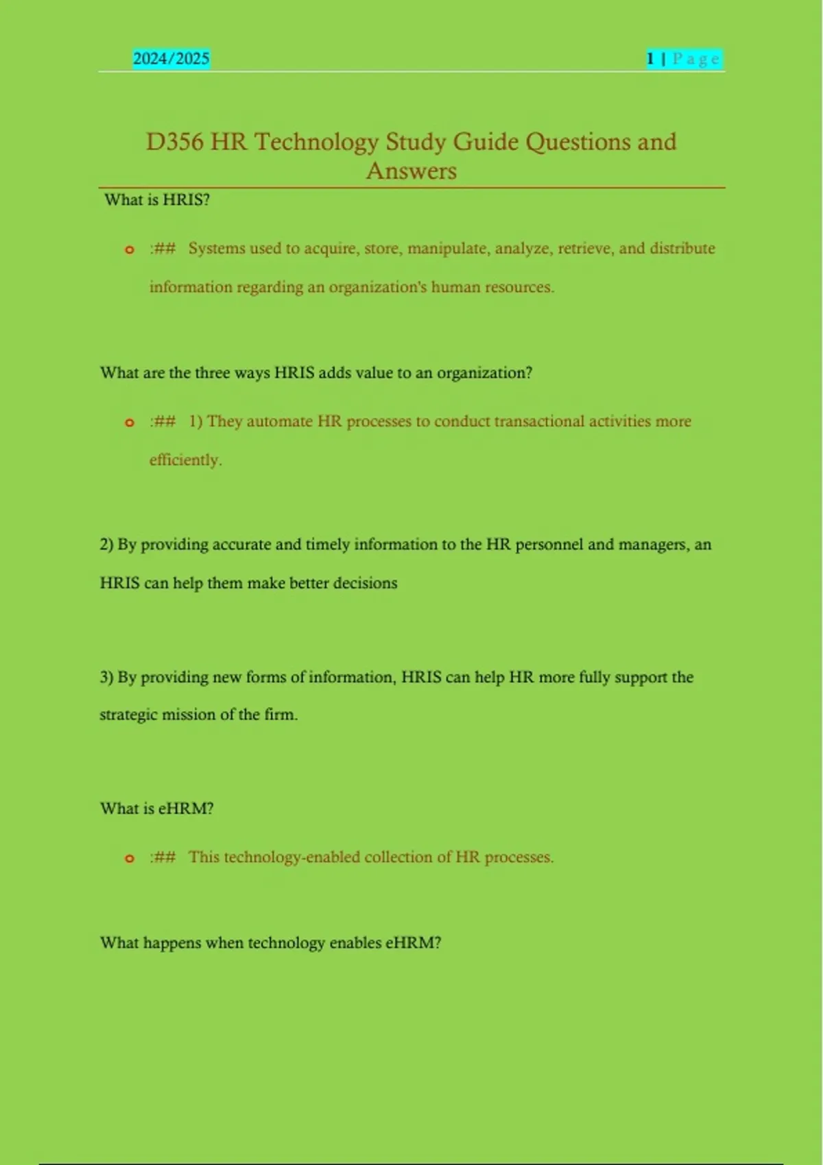 D356 HR Technology Study Guide Questions and