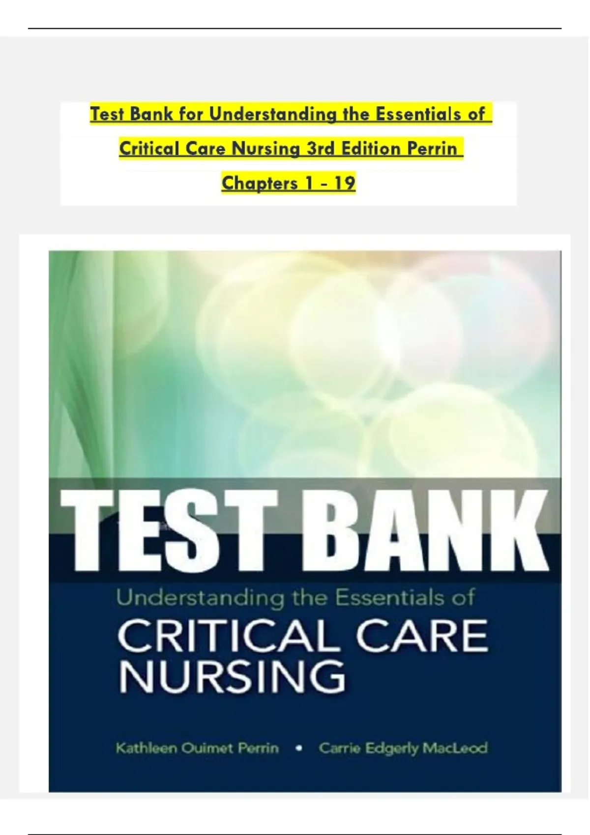 Test Bank for Understanding the Essentials of Critical Care Nursing 3rd Edition by Perrin and Macleod All Chapters 1-19