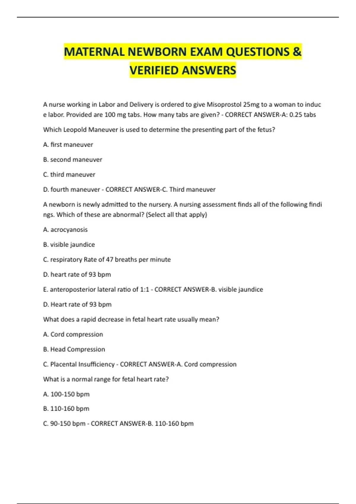 MATERNAL NEWBORN EXAM QUESTIONS &