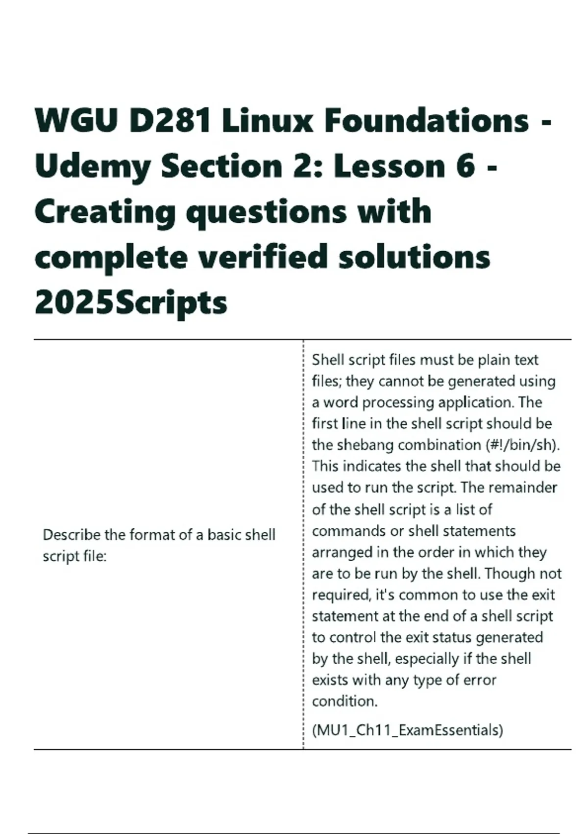 WGU D281 Linux Foundations - Udemy Section 2 Lesson 6 - Creating questions with complete verified solutions