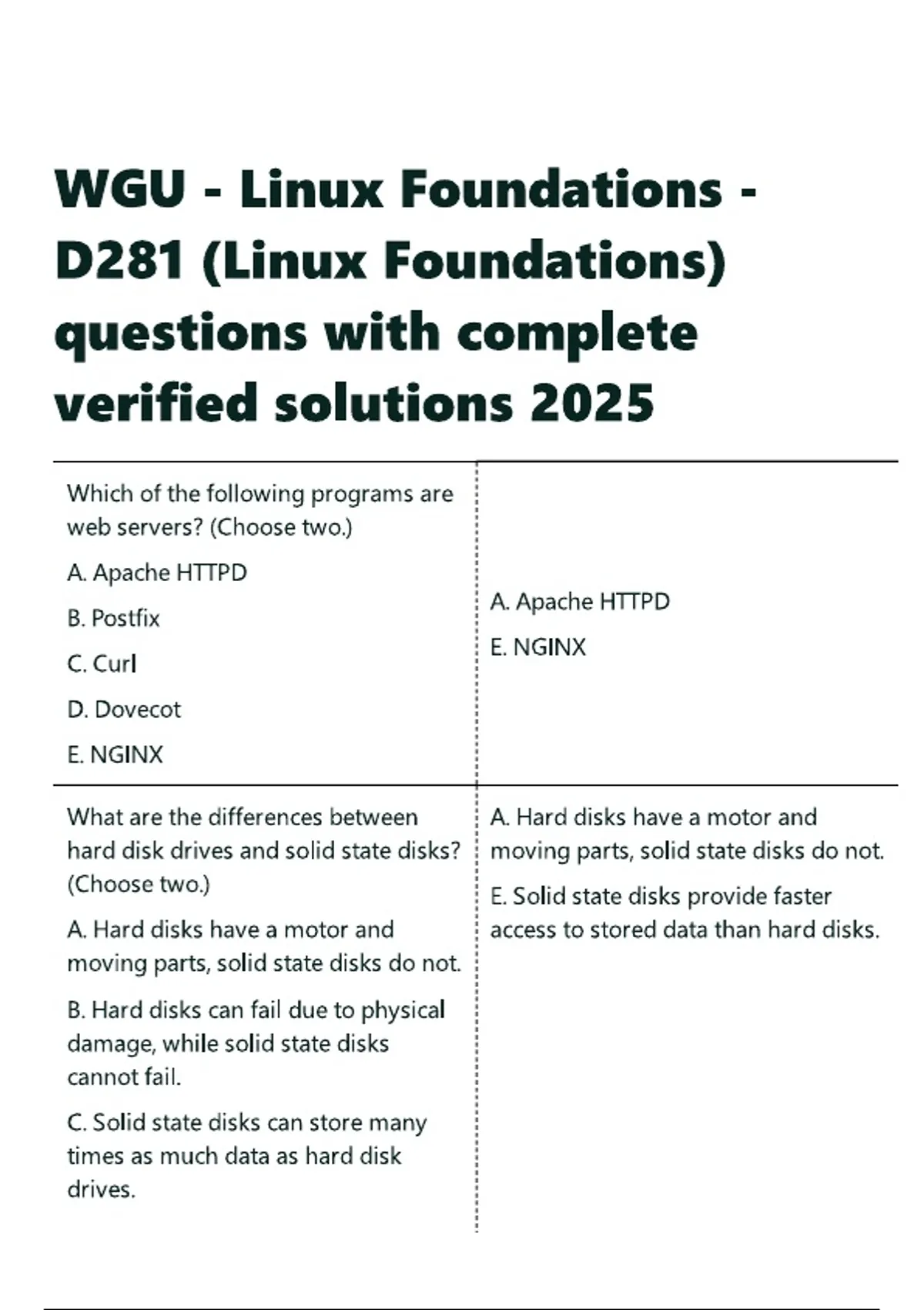 WGU - Linux Foundations - D281 (Linux Foundations) questions with complete verified solutions 2025.