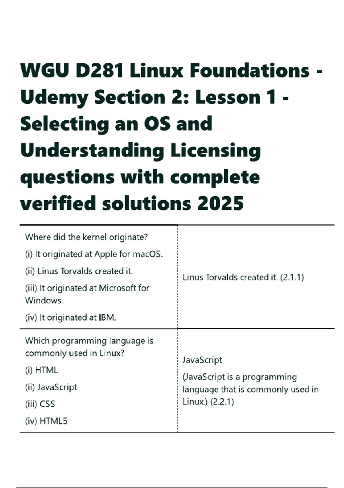 WGU D281 Linux Foundations - Udemy Section 2 Lesson 1 - Selecting an OS and Understanding questions and answers
