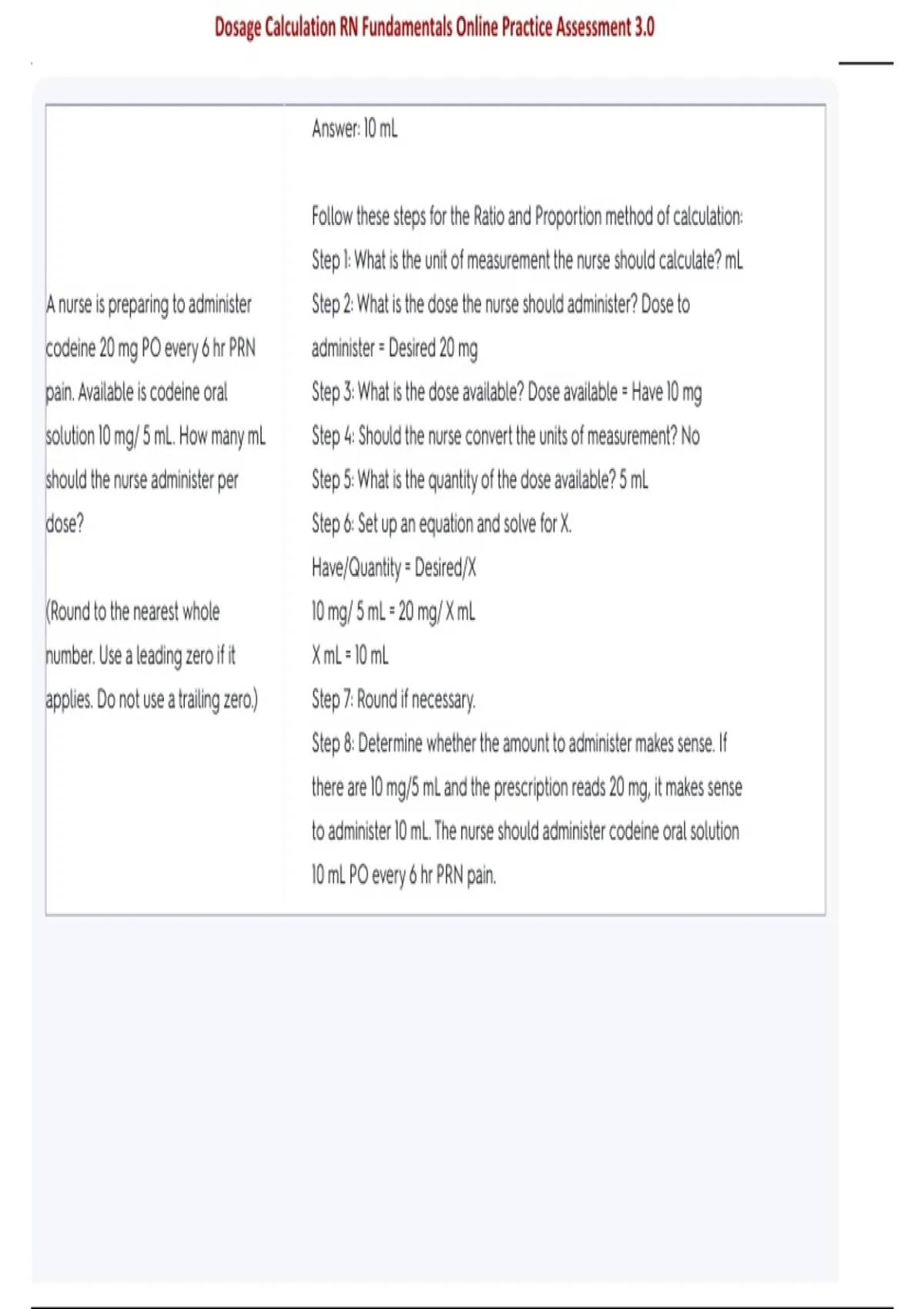 , Dosage Calculation RN Fundamentals Online Practice Assessment 3.0