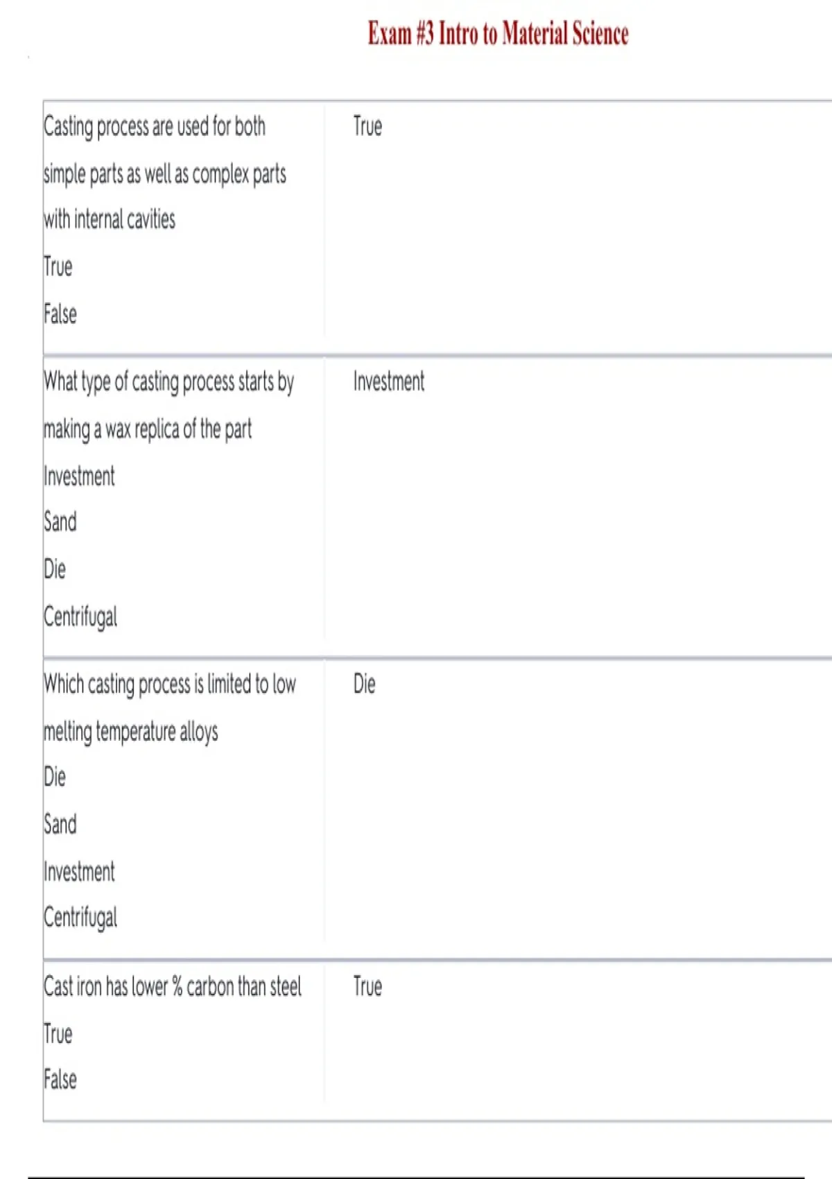 , Exam #3 Intro to Material Science