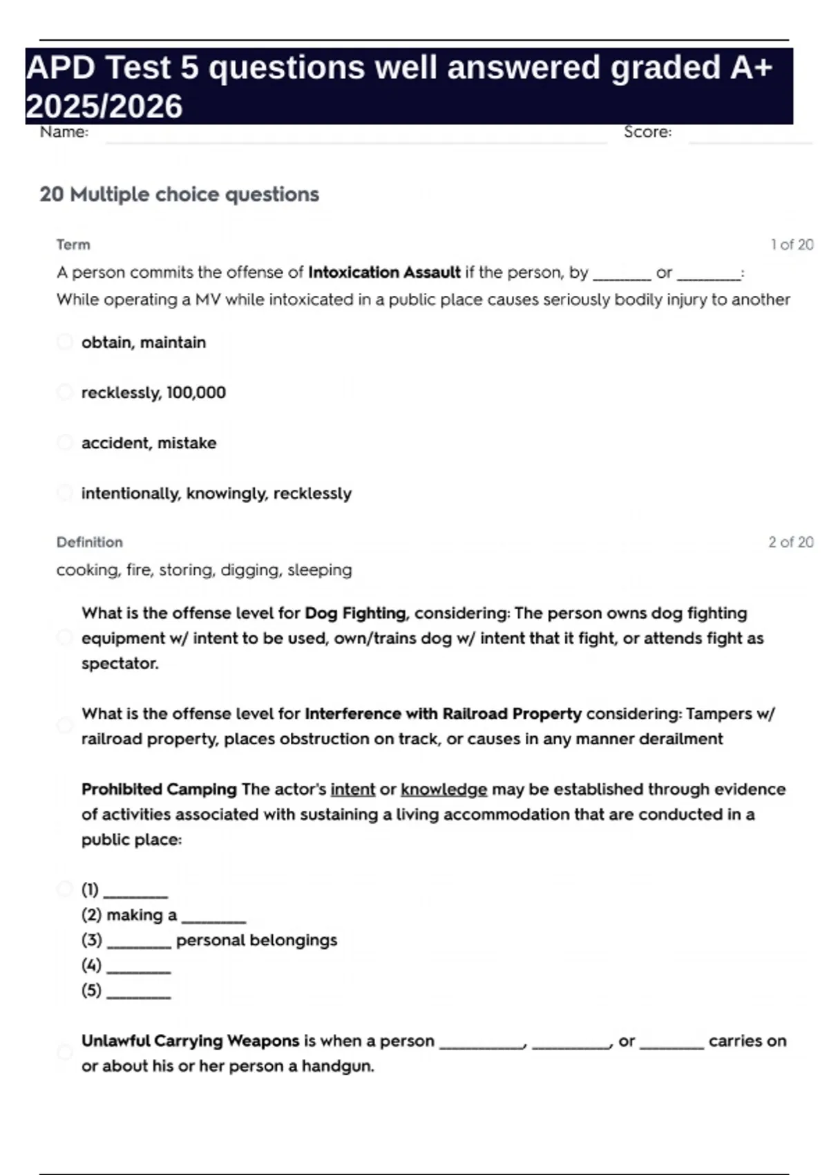 apd test 5 questions well answered graded a 2025