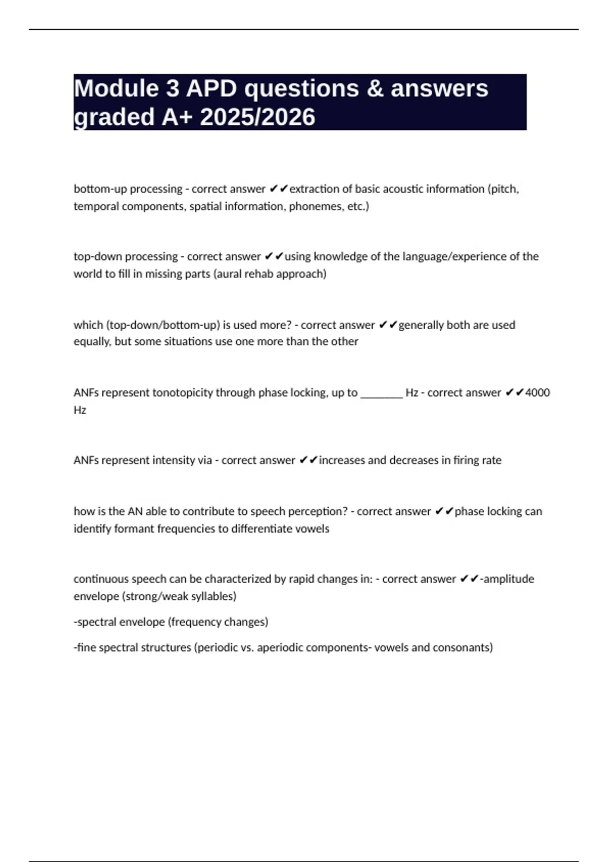 bottom-up processing - correct answer ✔✔extraction of basic acoustic information (pitch,
