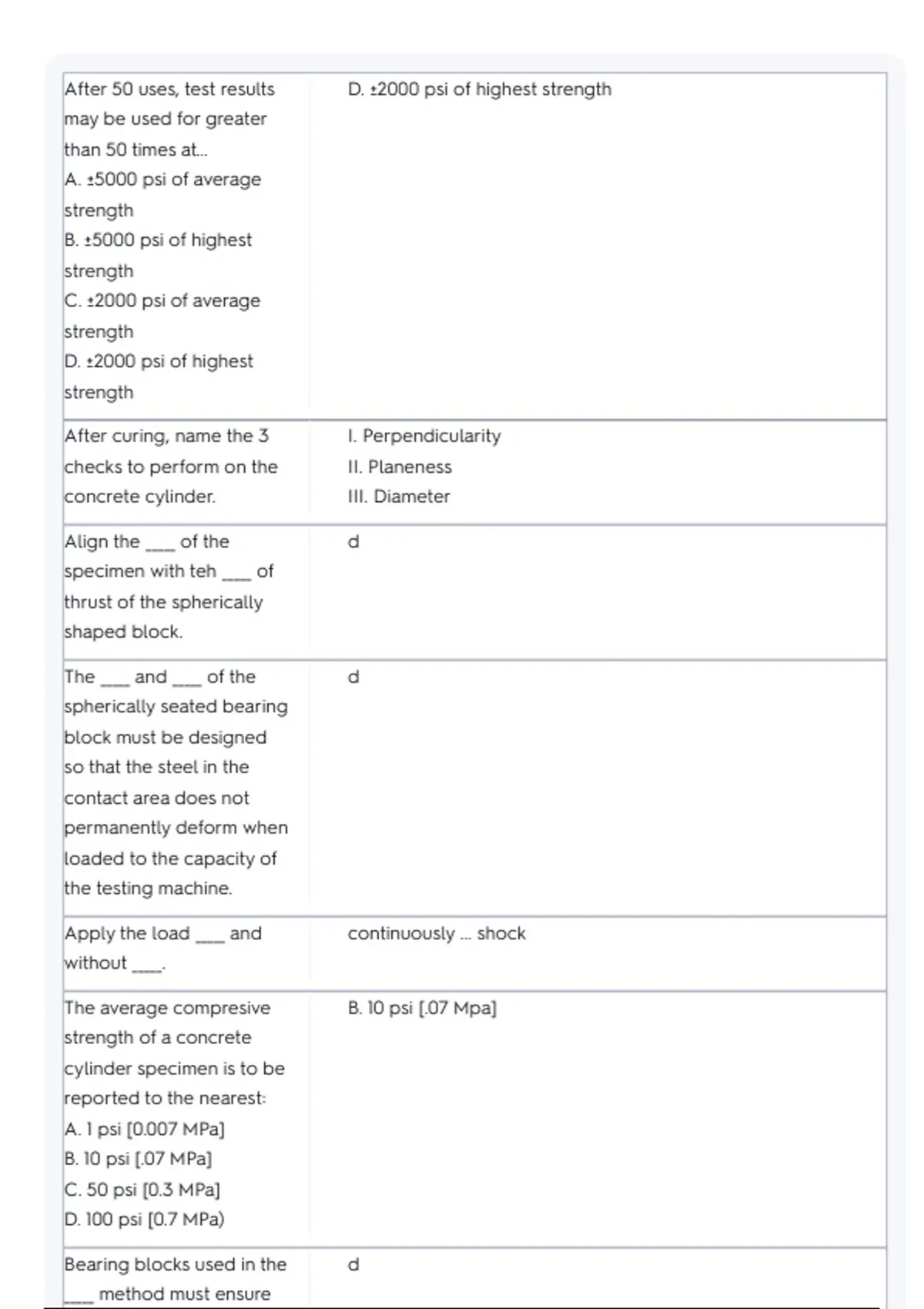 After 50 uses, test results D. ±2000 psi of highest strength