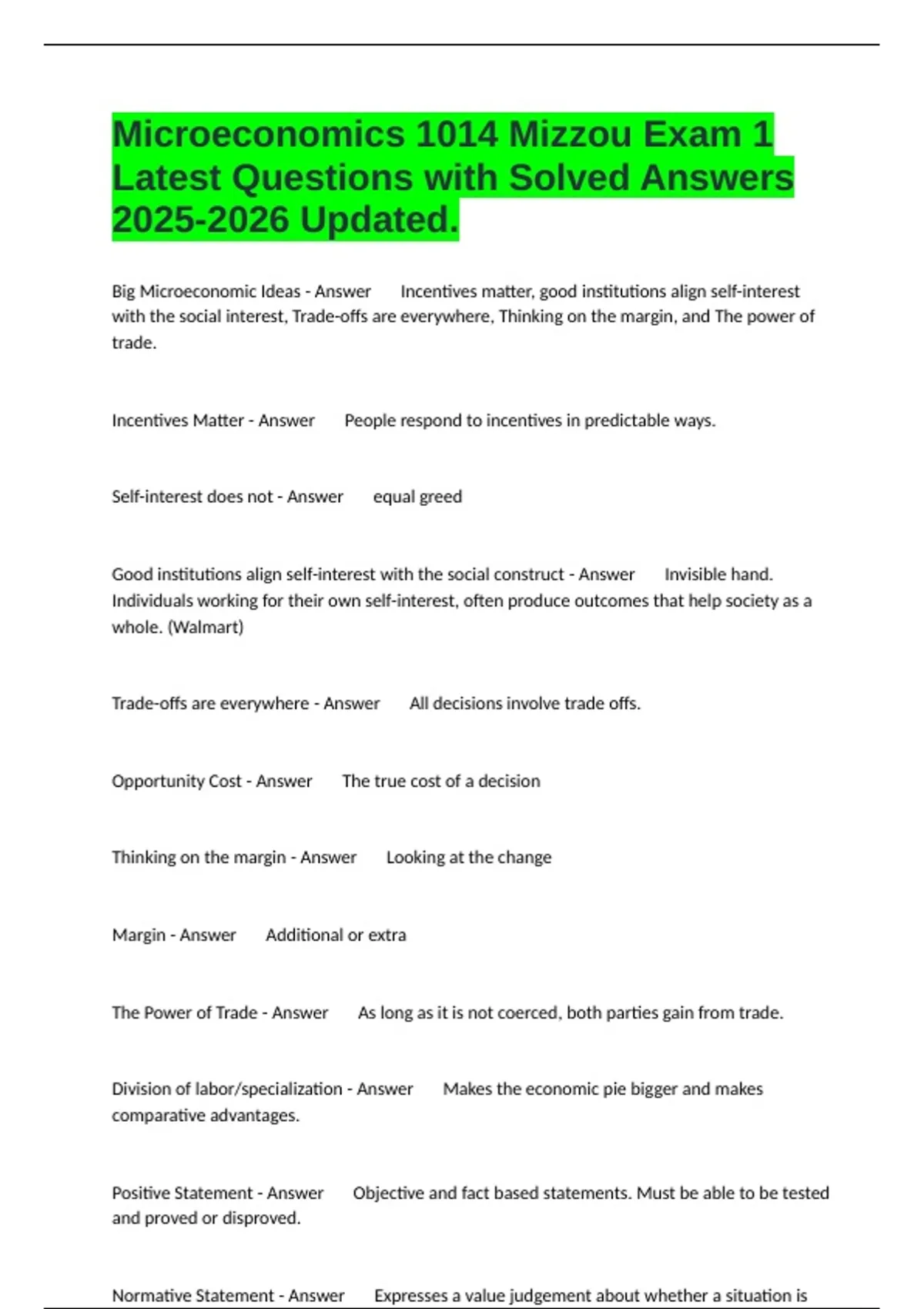Big Microeconomic Ideas - Answer Incentives matter, good institutions align self-interest