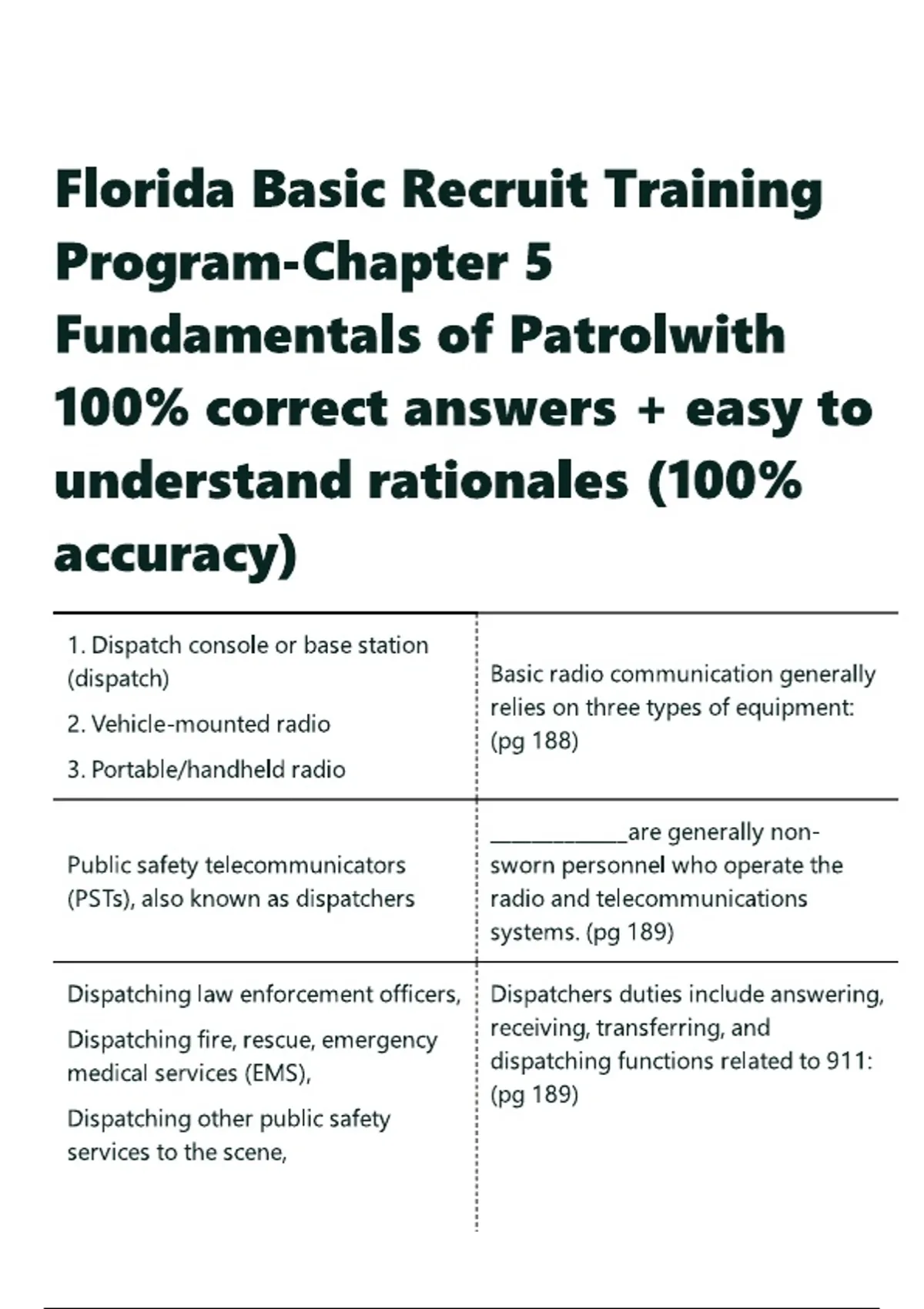 Florida Basic Recruit Training Program-Chapter 5 Fundamentals of Patrolwith 100- correct answers