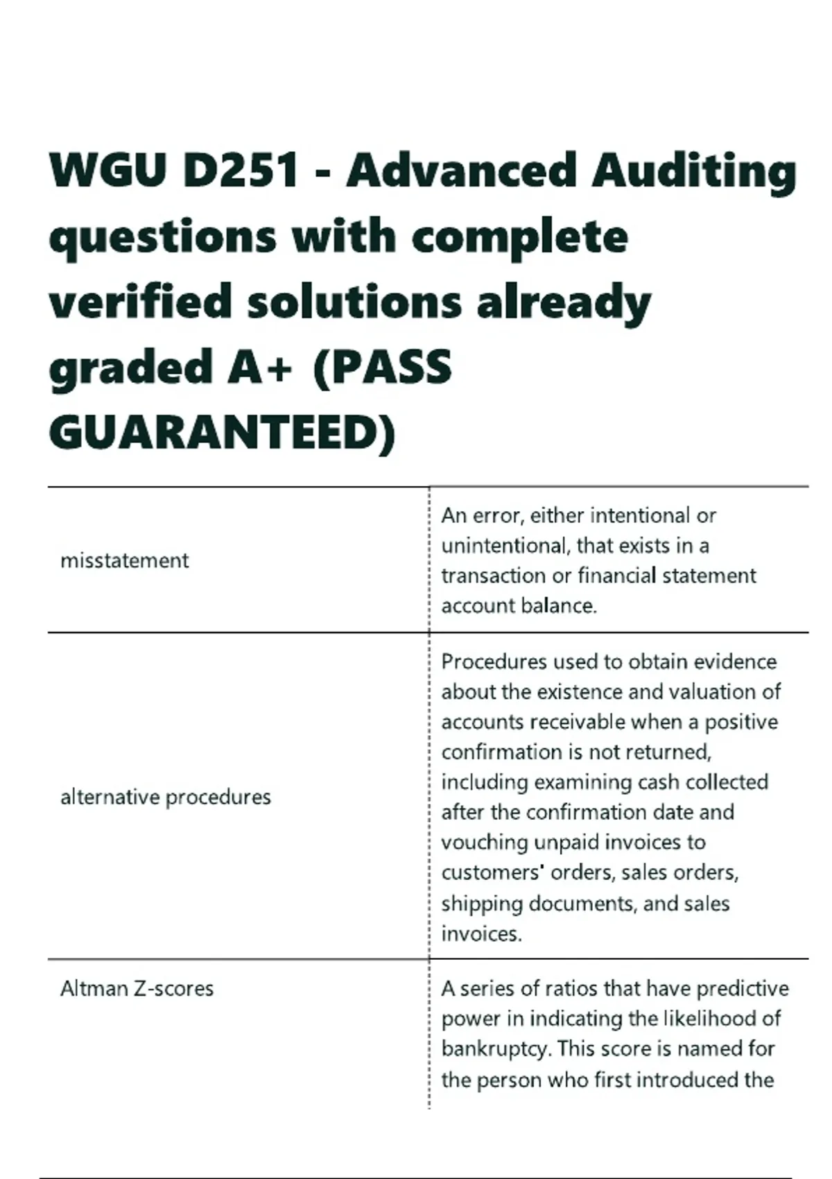 WGU D251 - Advanced Auditing questions with complete verified solutions already graded A+