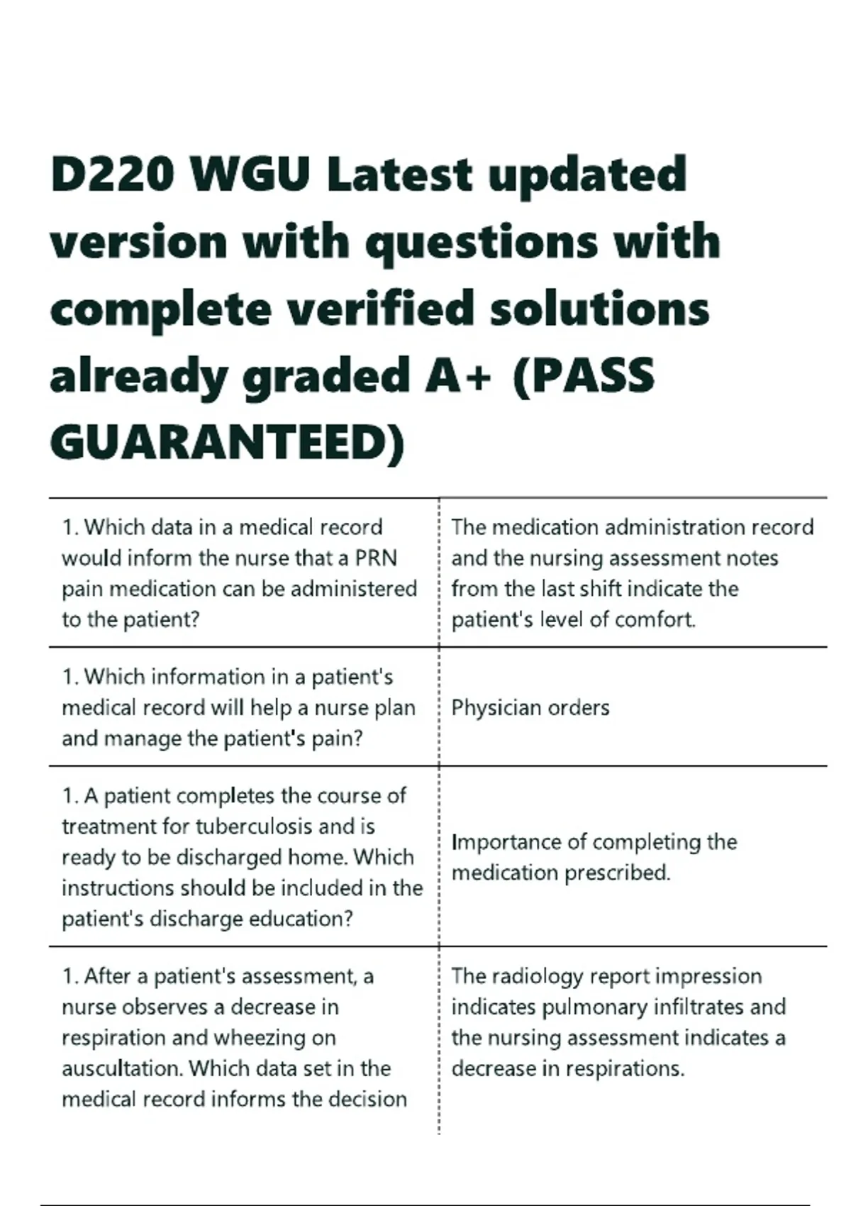 D220 WGU Latest updated version with questions with complete verified solutions already graded A+
