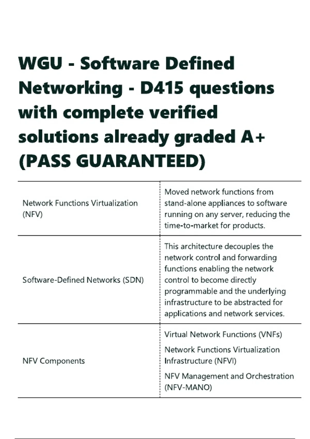 WGU - Software Defined Networking - D415 questions with complete verified solutions already graded A+