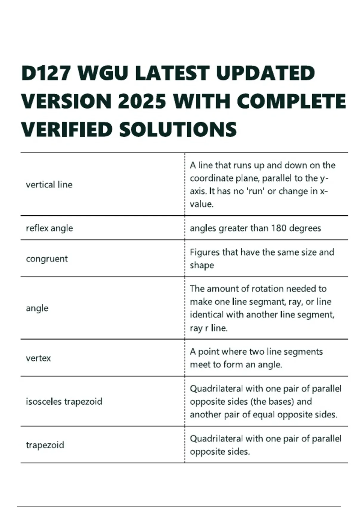 D127 WGU LATEST UPDATED VERSION 2025 WITH COMPLETE VERIFIED SOLUTIONS