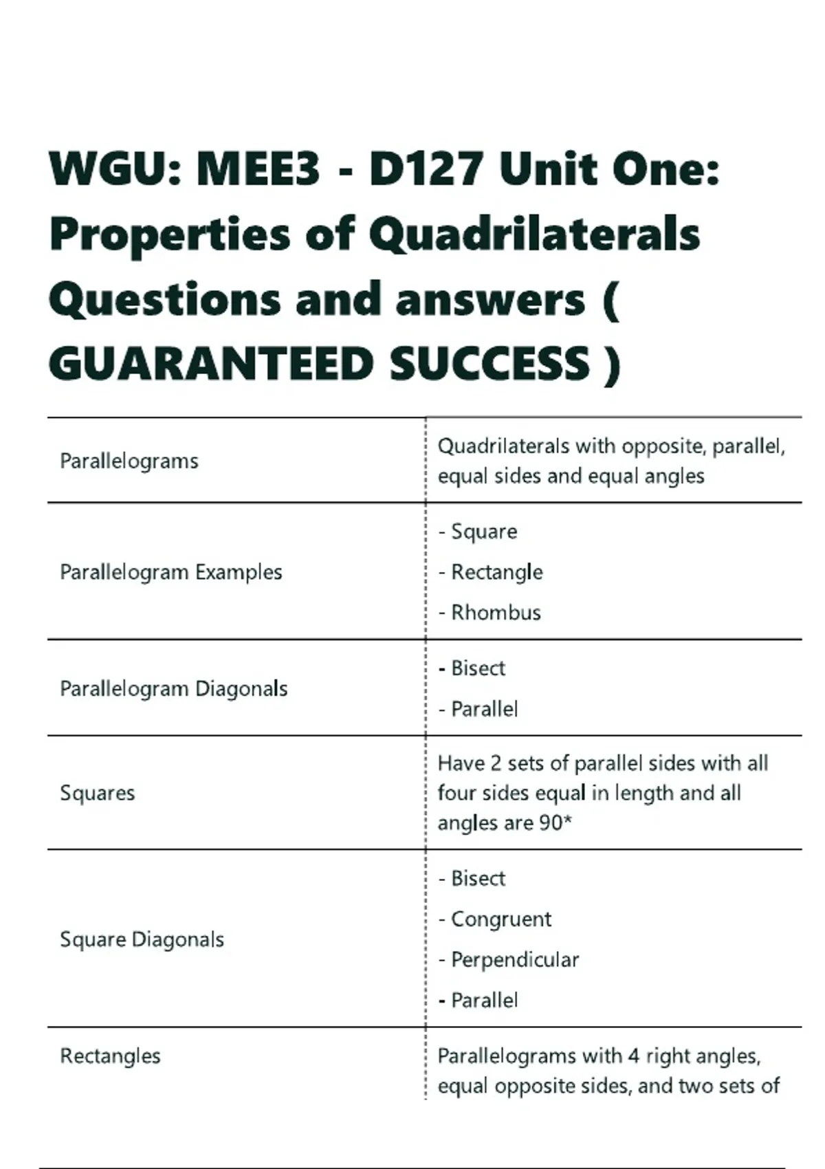 WGU MEE3 - D127 Unit One Properties of Quadrilaterals Questions and answers
