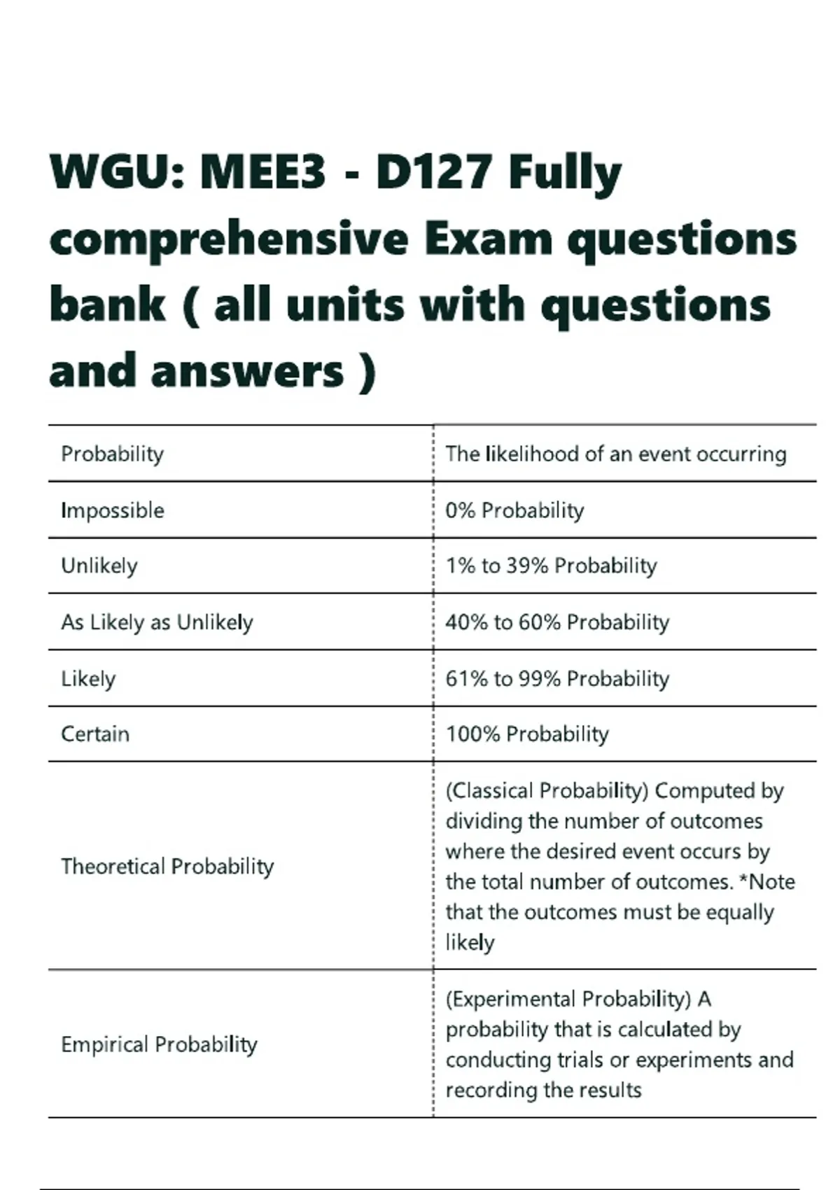WGU MEE3 - D127 Fully comprehensive Exam questions bank ( all units with questions and answers