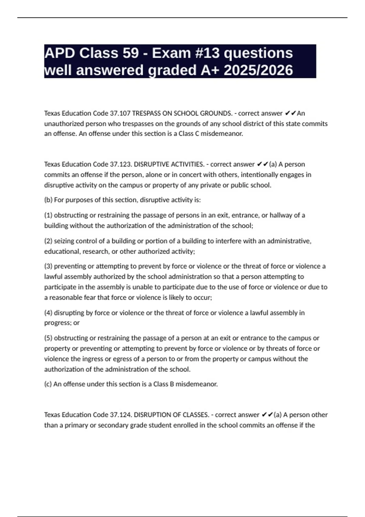 Texas Education Code 37.123. DISRUPTIVE ACTIVITIES. - correct answer ✔✔(a) A person