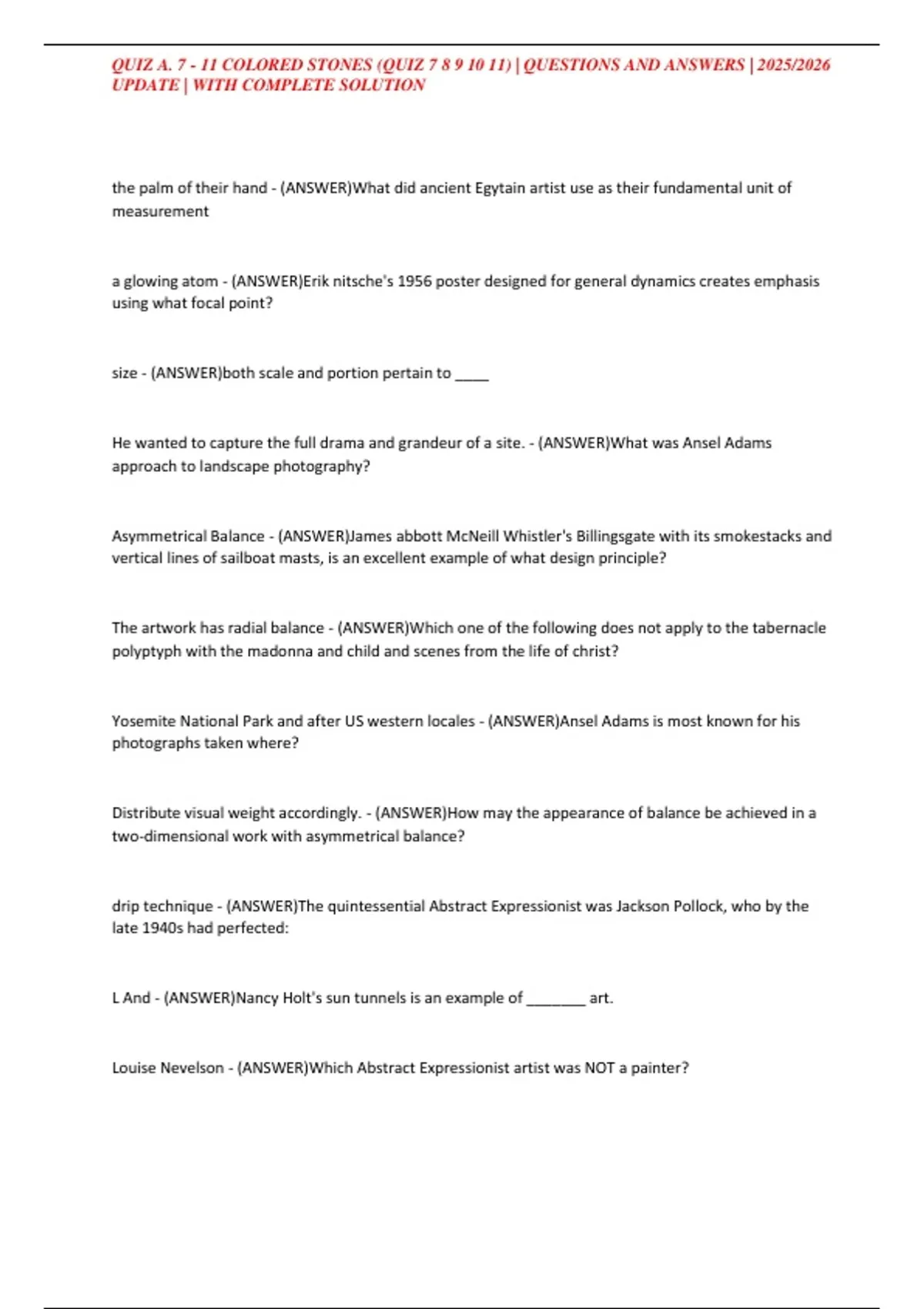 ,QUIZ A. 7 - 11 COLORED STONES (QUIZ 7 8 9 10 11) | QUESTIONS AND ANSWERS | 2025/2026