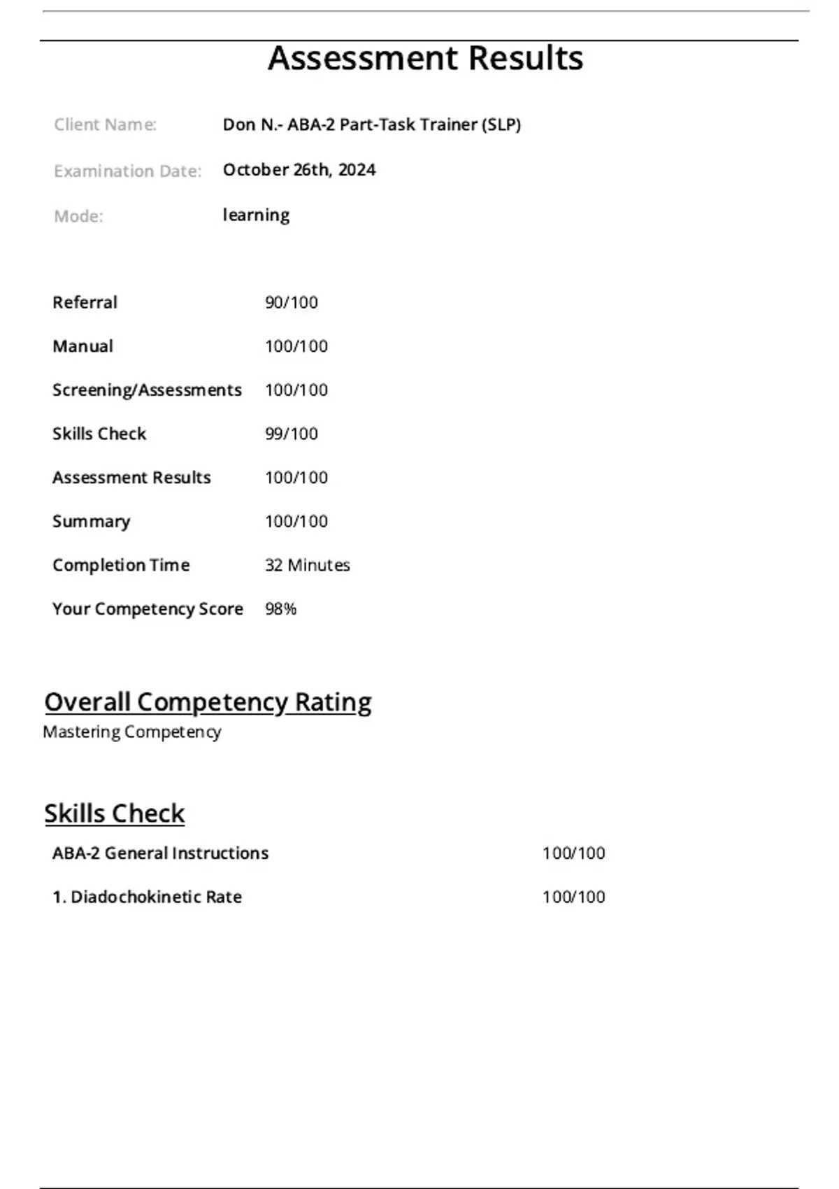 Client Name: Don N.- ABA-2 Part-Task Trainer (SLP)