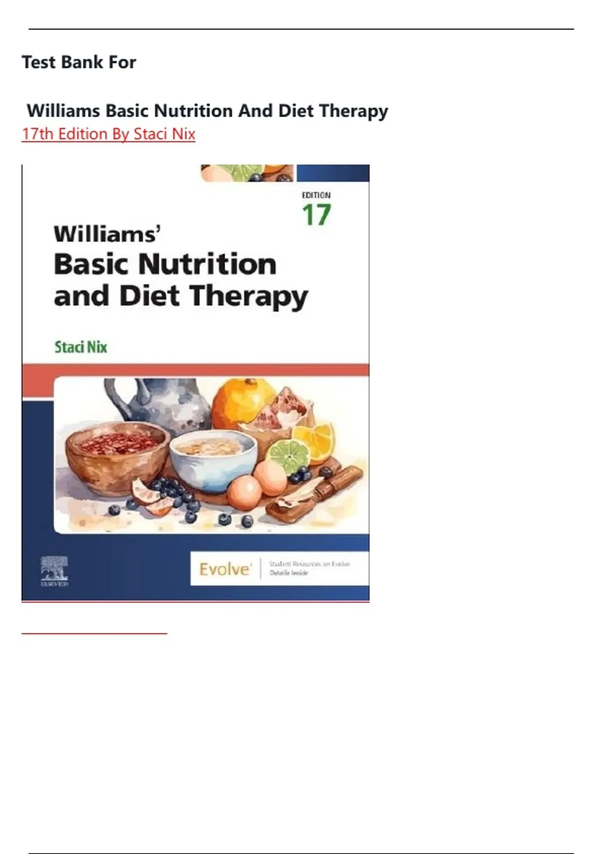 TEST BANK For Williams Basic Nutrition and Diet Therapy 17th Edition by Staci Nix, All 23 Chapters Covered, Verified Newest Edition