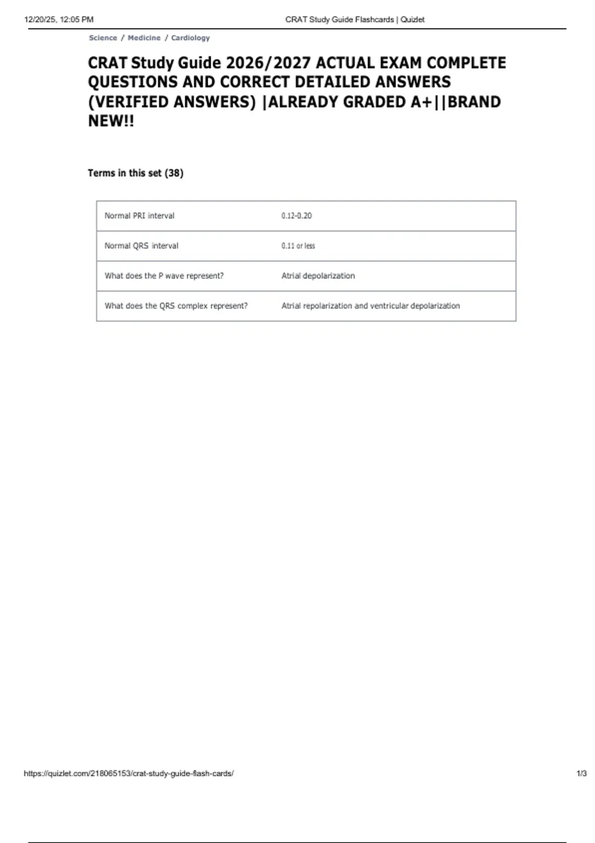 CRAT Study Guide 2026/2027 ACTUAL EXAM COMPLETE