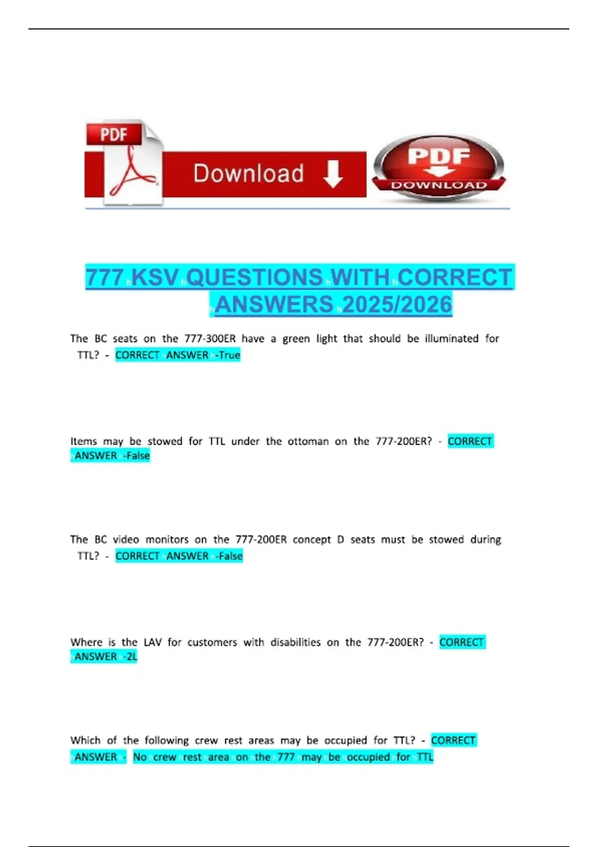 777 KSV QUESTIONS WITH CORRECT ANSWERS