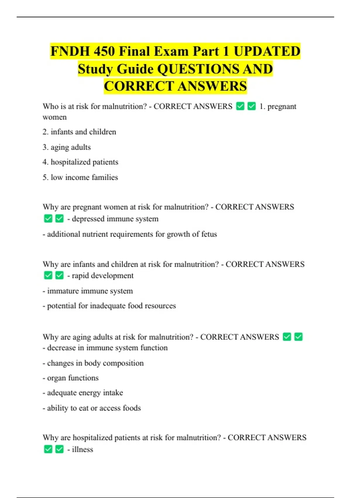 FNDH 450 Final Exam Part 1 UPDATED