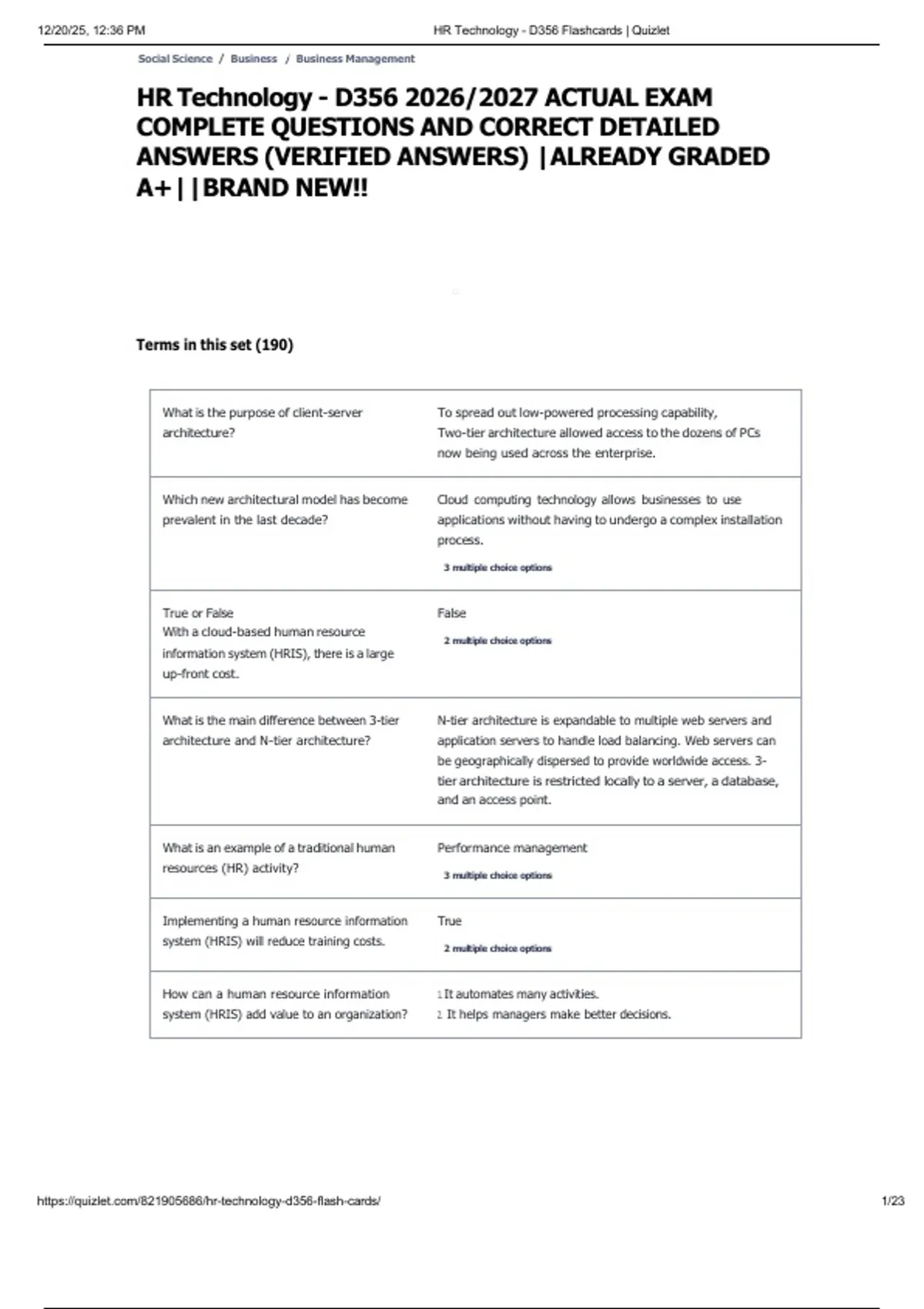, 12/20/25, 12:36 PM HR Technology - D356 Flashcards | Quizlet