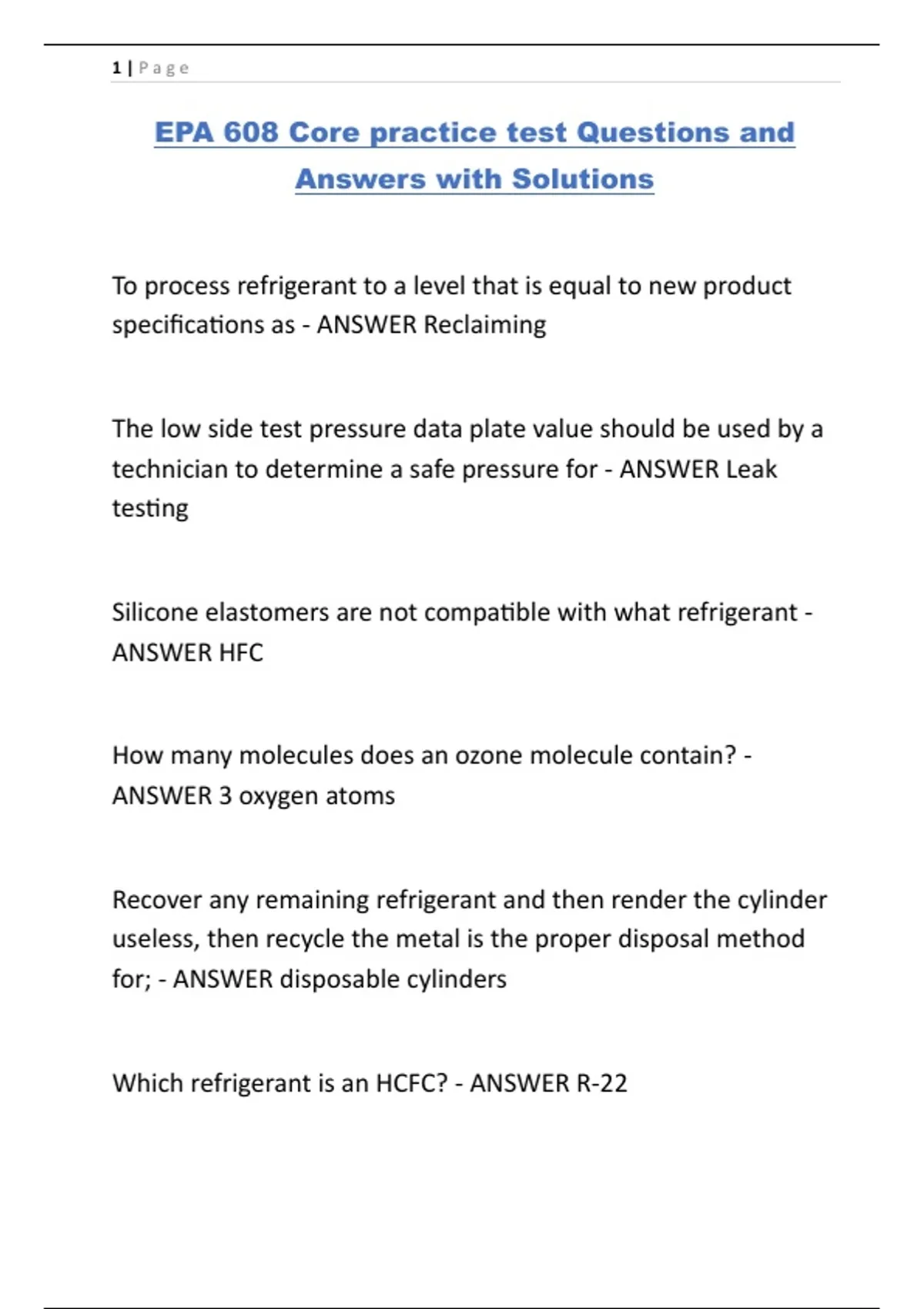 EPA 608 Core practice test Questions and Answers with Solutions.